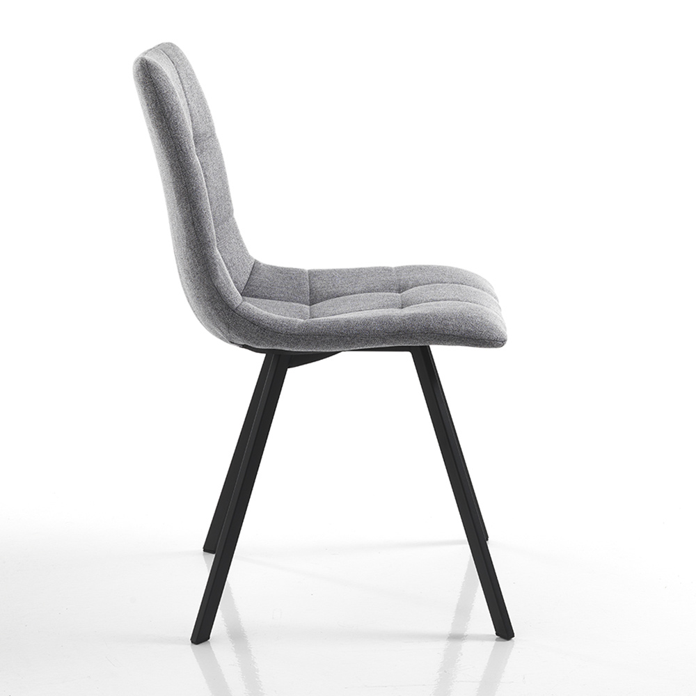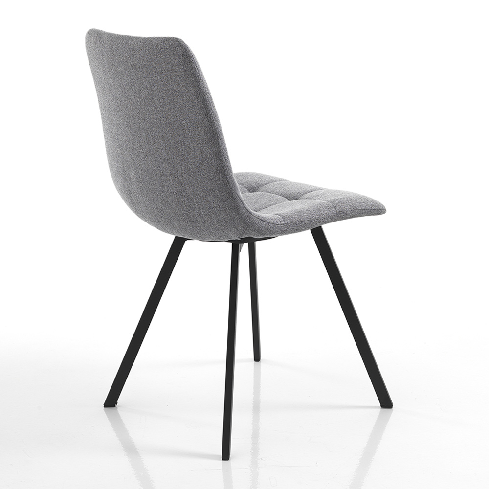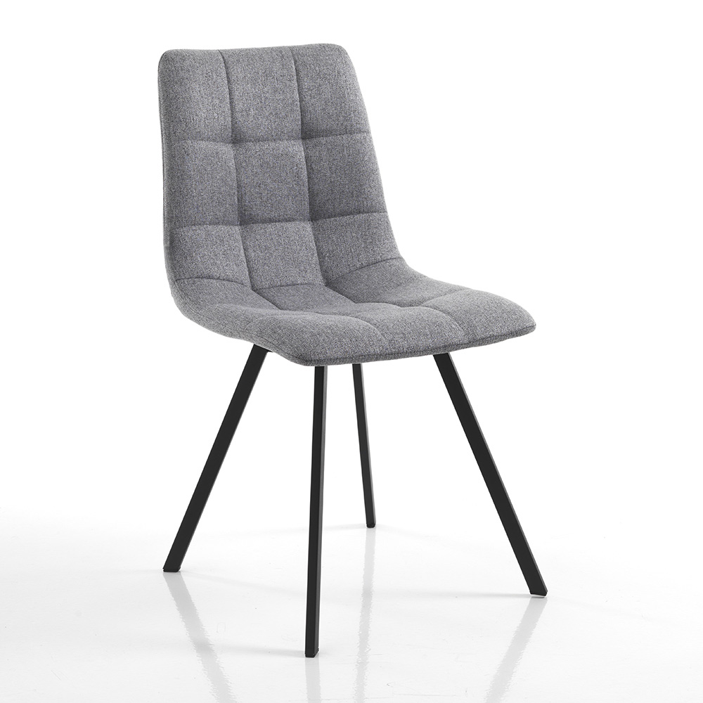 Karrige kuzhine me strukturë prej çeliku të lyer me ngjyrë të zezë mat dhe ndenjëse e mbuluar tërësisht me pëlhurë gri . Ideale për t'u vendosur në dhomën e ngrënies dhe kuzhinën, por edhe në hapësirat me kontratë si bare dhe restorante falë dizajnit elegant dhe të rafinuar dhe shkathtësisë së tij të përdorimit. Format që shënojnë figurën së bashku me mbushjen e butë ofrojnë një ndenjëse veçanërisht mikpritëse dhe të rehatshme për të siguruar momente të mrekullueshme kushtuar relaksimit.