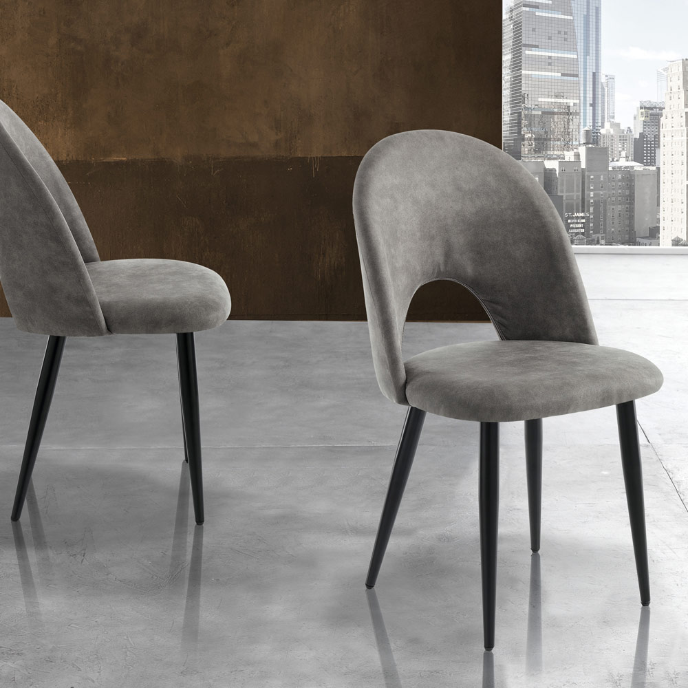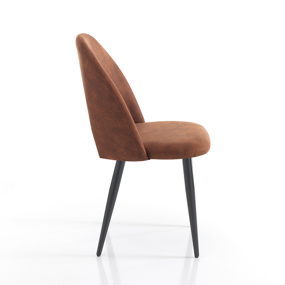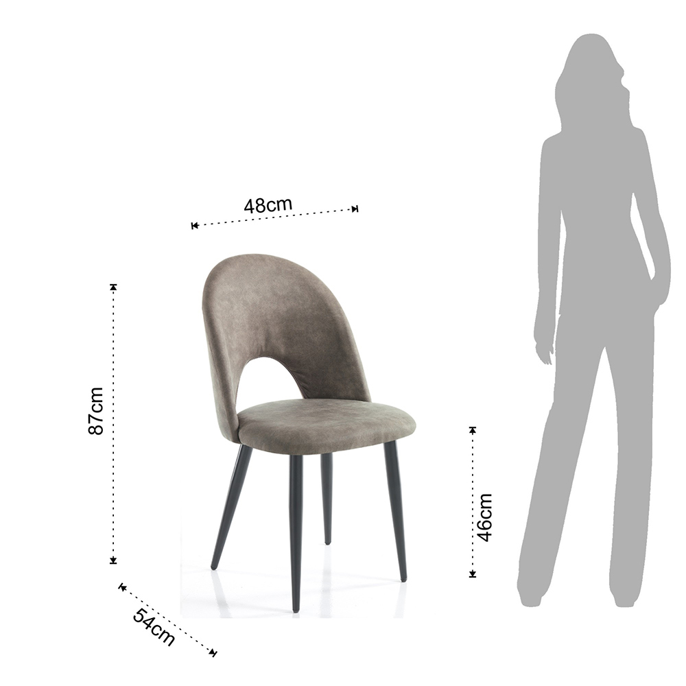 Karrige kuzhine me ndenjëse të mbushur e veshur me lëkurë sintetike të vjetëruar estrukture prej metali me ngjyre te zeze mat . Një dizajn thelbësor por me një ndikim të fortë vizual falë efektit të mrekullueshëm të krijuar nga veshja që i jep produktit të gjithë personalitetin e tij elegant dhe të rafinuar . Kombinimi perfekt me veshjen mat të këmbëve i jep jetë një karrigeje të veçantë, perfekte për kompletimin e çdo situate arredimi në ambiente shtëpiake si kuzhina apo dhoma ngrënie, por edhe në hapësira me kontratë si bare dhe restorante.