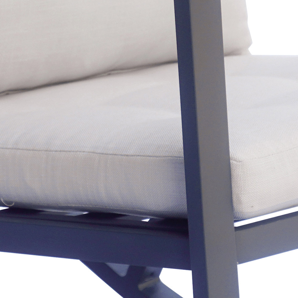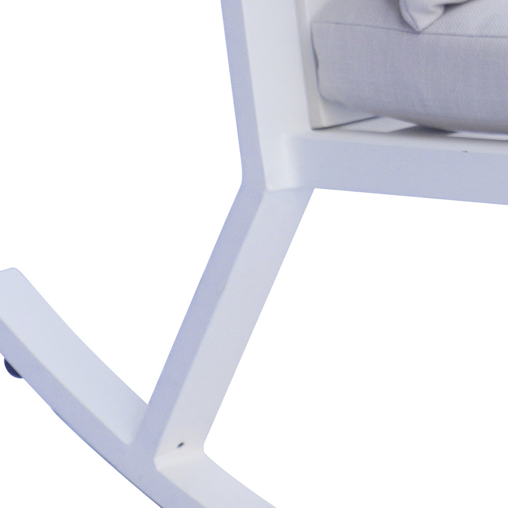 Sillni një prekje të elegancës moderne dhe relaksimit të sofistikuar në kopshtin tuaj me këtë karrige lëkundëse bashkëkohore . E krijuar për të kombinuar stilin dhe rehatinë, kjo karrige është krijuar me një kornizë të fortë alumini që siguron qëndrueshmëri dhe mirëmbajtje të lehtë. Dizajni minimalist shoqërohet me jastëkë të trashë dhe të butë, duke ofruar rehati superiore dhe mbështetje të përshtatshme për periudha të gjata relaksi.