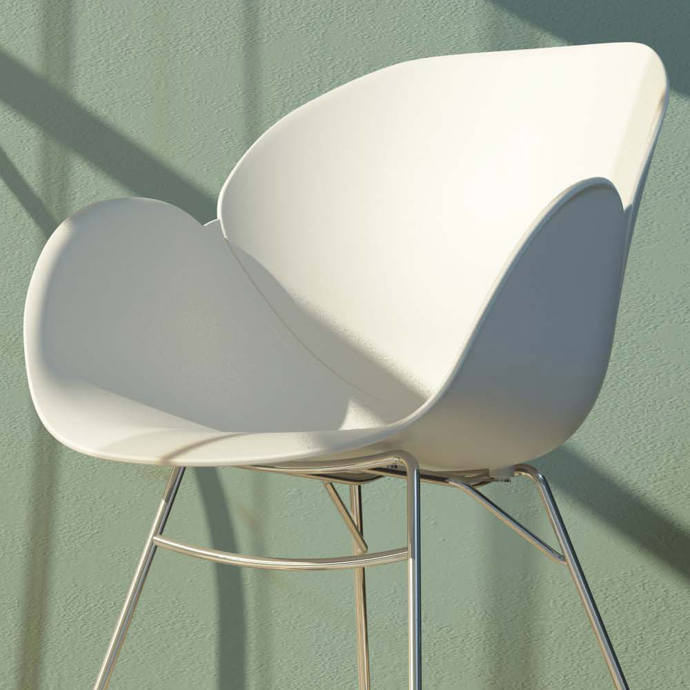 Karrige lëkundëse për dhomën e ndenjes e përbërë nga një strukturë metalike e kromuar dhe guaskë e bardhë polipropileni . Një mobilje origjinale me një estetikë ekskluzive , ideale për të kompletuar zonën tuaj të jetesës me personalitet dhe një prekje inovative . Forma e veçantë e rrumbullakosur e guaskës është mbështjellëse dhe e rehatshme duke ofruar kështu një ndenjëse mikpritëse dhe rehati maksimale së bashku me një dizajn të rafinuar dhe kreativ .