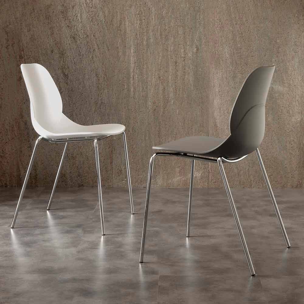 Karrige licata me guaskë polipropileni dhe këmbë të kromuar, dizajn modern.
