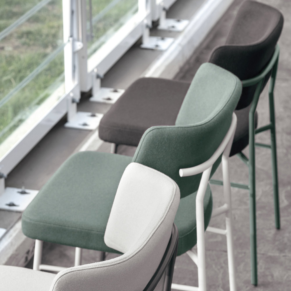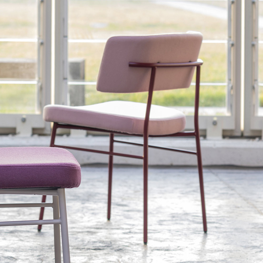 strukturë metalike të pikturuar dhe sedilje të mbuluar me