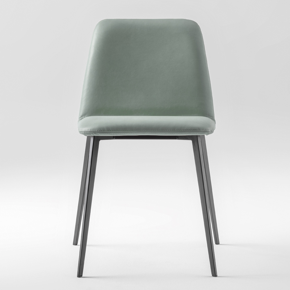 Karrige për dhomën e ngrënies ose kuzhinën e prodhuar në Itali me strukturë metalike të pikturuar me antracit plumbi dhe sedilje të mbushur me lëkurë . Një stil i thjeshtë dhe i rafinuar e karakterizon këtë karrige me tipare moderne që frymëzohet nga modelet tipike të viteve 50, duke i rishikuar ato në një çelës bashkëkohor për të krijuar një zgjidhje origjinale mobilimi. Ajo që lind është një vend që, në sajë të përdorimit të lëndëve të para cilësore , pajton funksionalitetin dhe modelin, duke arritur të kompletojë mobilimin e dhomës me personalitet dhe elegancë .