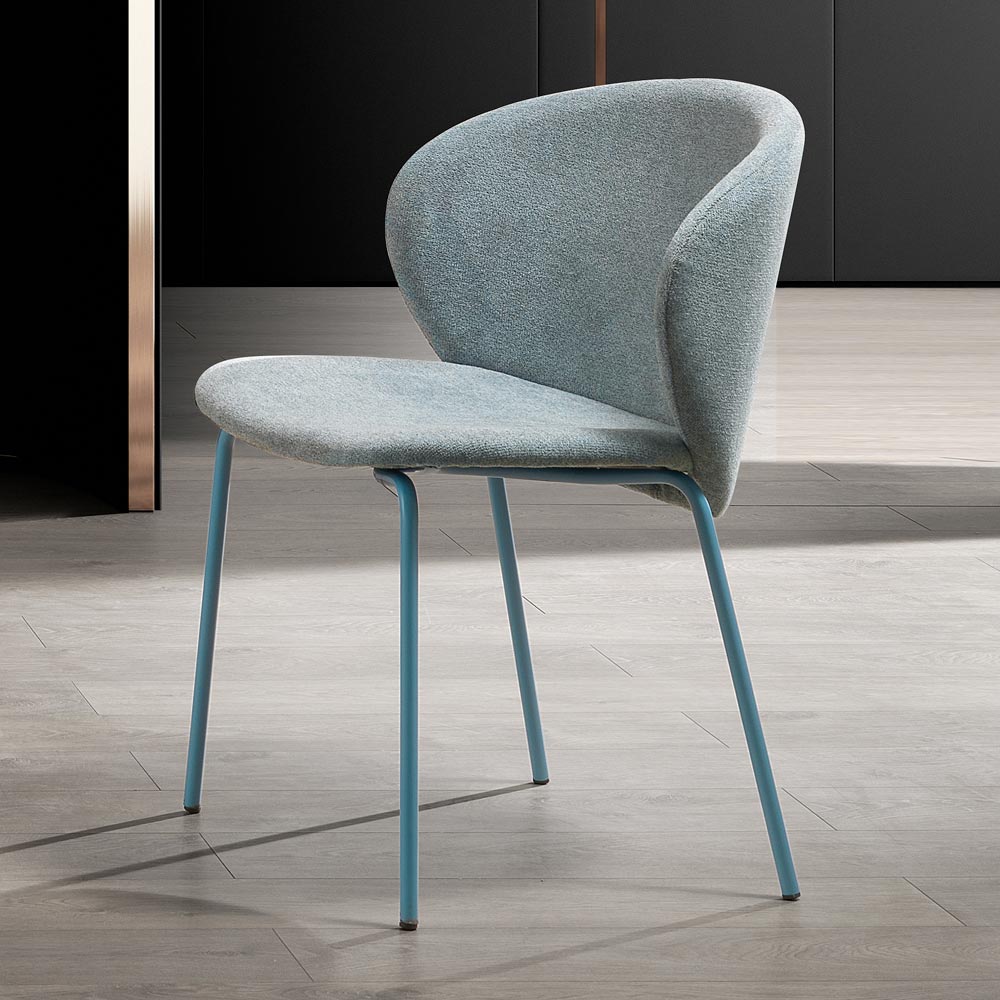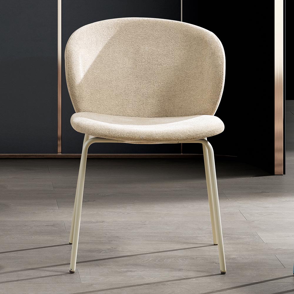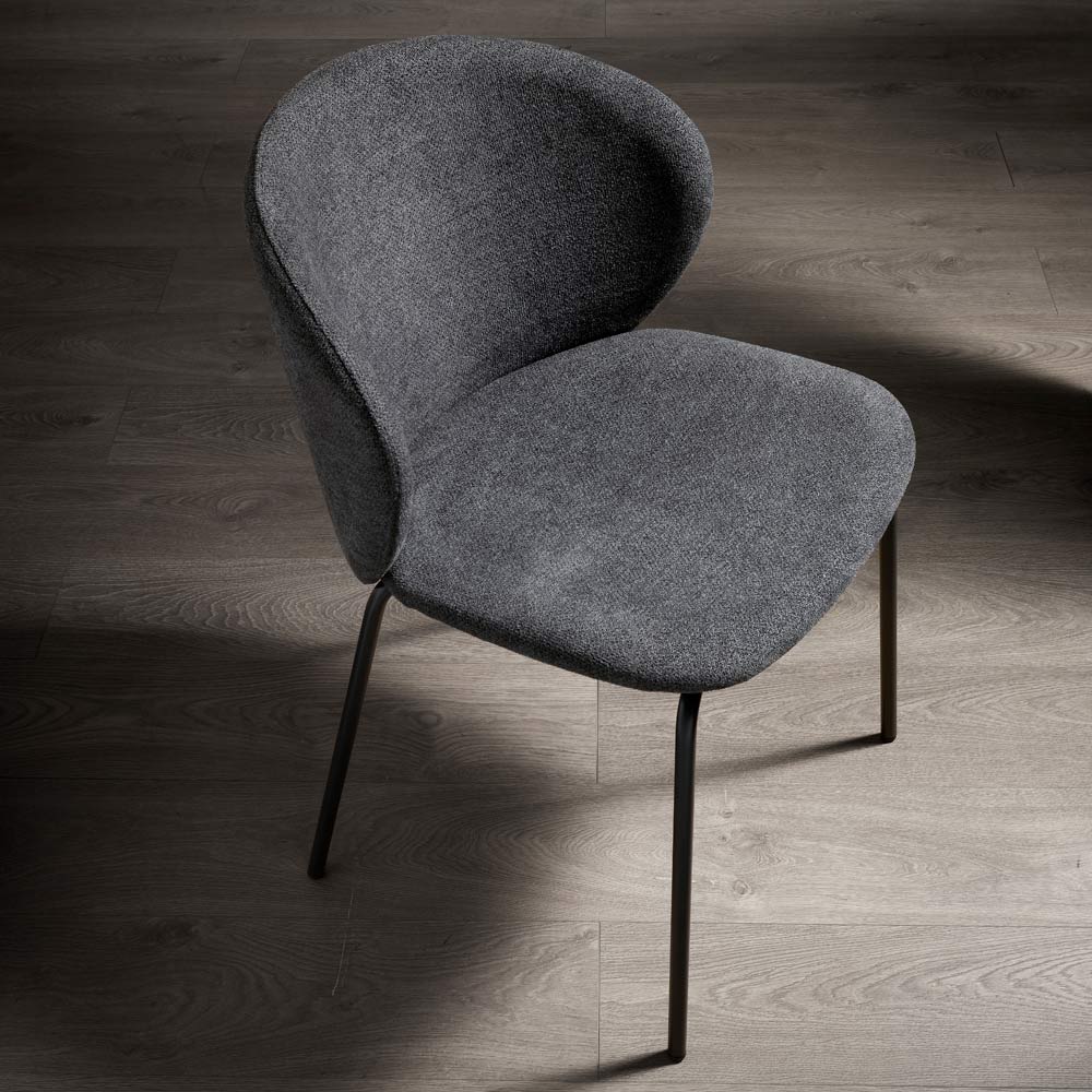 Këmbët e holla metalike i japin karriges elegancë delikate dhe qëndrueshmëri të fortë, një kontrast materialesh që bazohet në modernizmin industrial dhe natyralitetin skandinav. Është një karrige që ofron një prekje të sofistikimit të lehtë për çdo ambient.