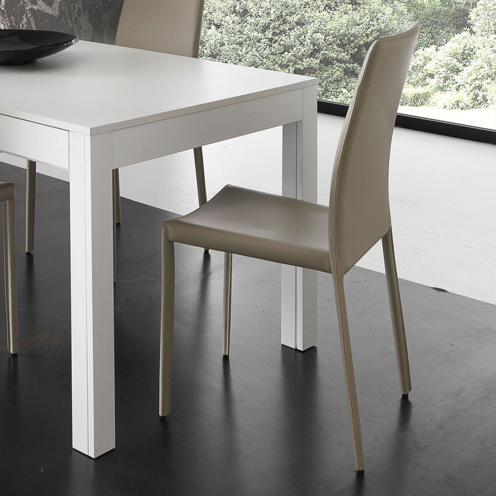 Karrige e dhomës së ngrënies me strukturë prej metali e veshur me lëkurë imitim pvc në të njëjtën ngjyrë dhe e disponueshme në gjashtë dekorime të ndryshme. Një mobilje e karakterizuar nga një estetikë thelbësore dhe elegante , ideale për të arreduar ambientin tuaj të ndenjes në mënyrë ekskluzive dhe me shije. Ngjyrat e mrekullueshme të propozuara kontribuojnë në bërjen e karriges të gjithanshme , të aftë për të krijuar harmoni të përsosur me elementët e arredimit përreth.