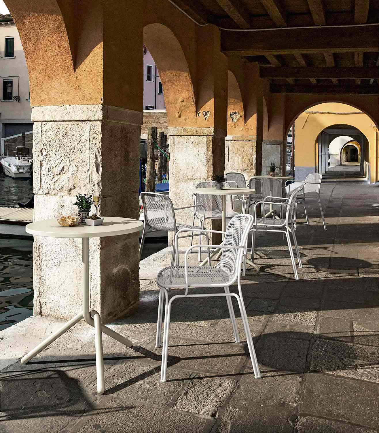Verna është një karrige e mrekullueshme në natyrë e bërë krejtësisht prej metali dhe rrjetë teli që kombinon në mënyrë të përkryer linjat tradicionale me një dizajn bashkëkohor duke e bërë karrigen të qëndrueshme dhe të rehatshme falë pranisë së krahëve. Shtë gjithashtu jashtëzakonisht e lehtë për tu trajtuar falë trupit pak të ngritur në krahasim me këmbët. E disponueshme në 5 variacione ngjyrash që i lejojnë asaj t’i japin personalitet çdo ambienti, Verna është një karrige e mundshmederi në maksimum 6 njësi që ju lejon të zgjedhni hapësirat më të mira.