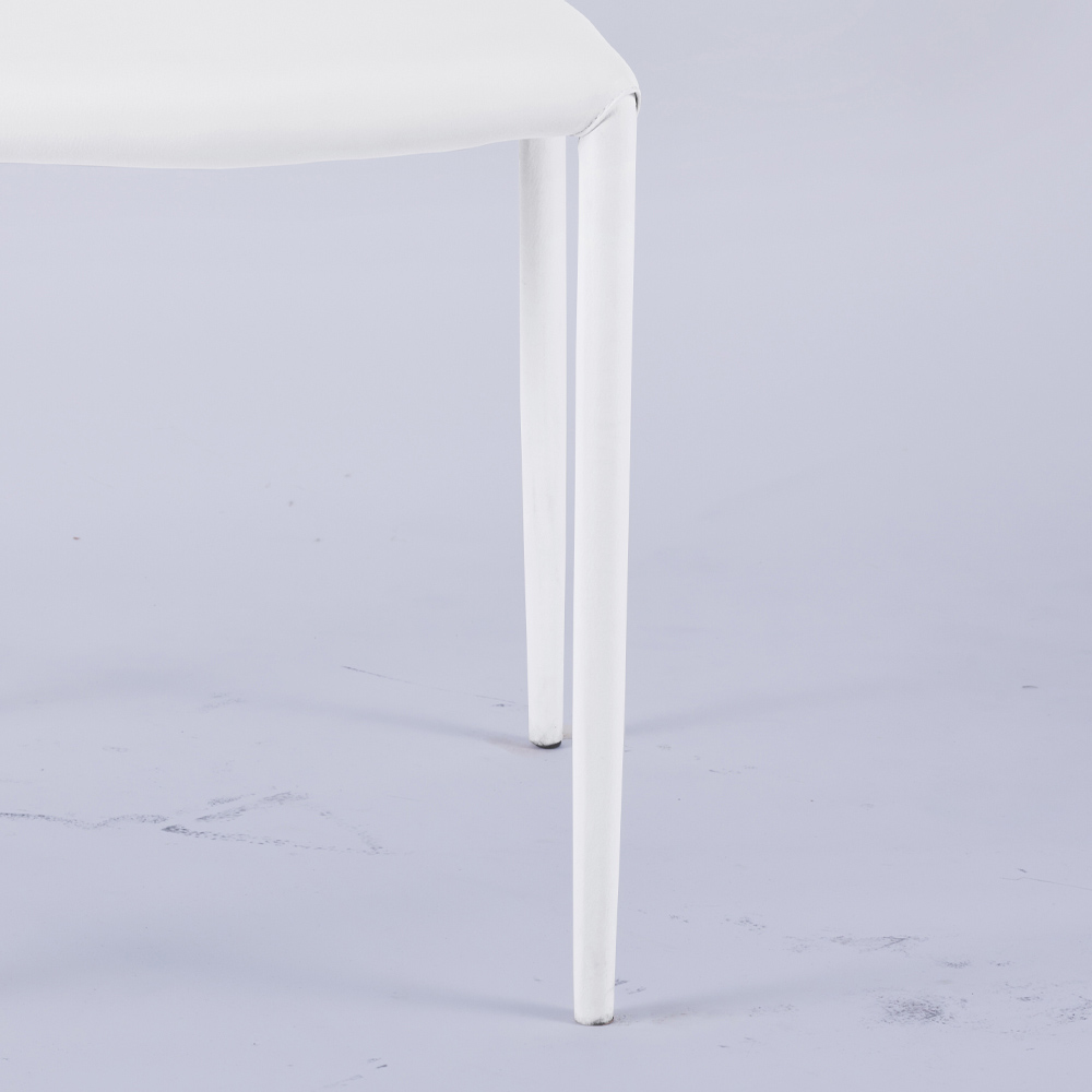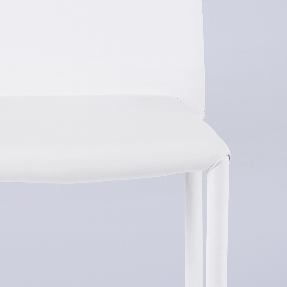 Karrige me dizajn modern me guaskëçeliku e mbuluar tërësisht me eko-lëkurë të bardhë. Një aksesor mobilimi që përshtatet lehtësisht me çdo kontekst stilistik në të cilin është futur, duke ndihmuar në krijimin e një atmosfere unike dhe me klas . Lehtësia estetike që karakterizon dizajnin e tij e bën atë të përsosur për kompletimin e hapësirave shtëpiake si dhomat e ngrënies dhe kuzhinat, por edhe zona të kontraktuara si bare dhe restorante me personalitet përmes formave të tij të thjeshta dhe të rafinuara . Produkti është pjesë e linjës së re të produkteve moderne të prodhuara me respekt për natyrën.