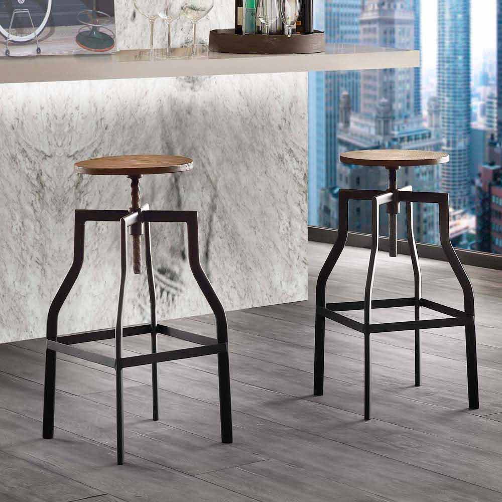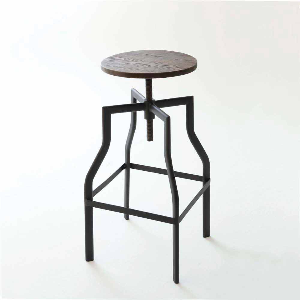 Përbëhet nga një strukturë metalike me ngjyrë të zezë industriale dhe një vend industrial me dru arre të rregullueshëm në lartësi deri në një maksimum prej H76 cm. Siguroni stilin maksimal dhe rehati me këtë karrige.