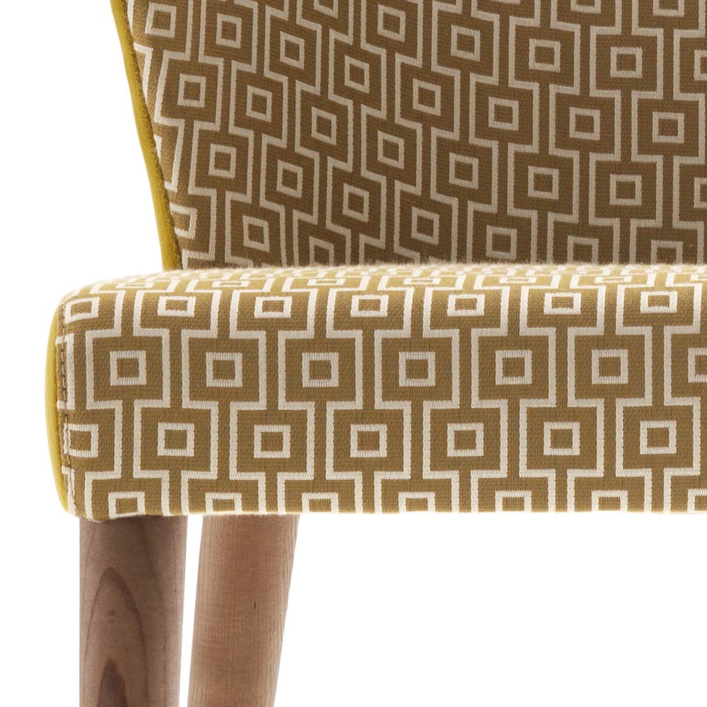 Karrige moderne e projektimit me këmbë të forta druri në arre kanalete; ulëse dhe mbrapa në poliuretani me shkumë të ftohtë dhe mbulesë pëlhure.