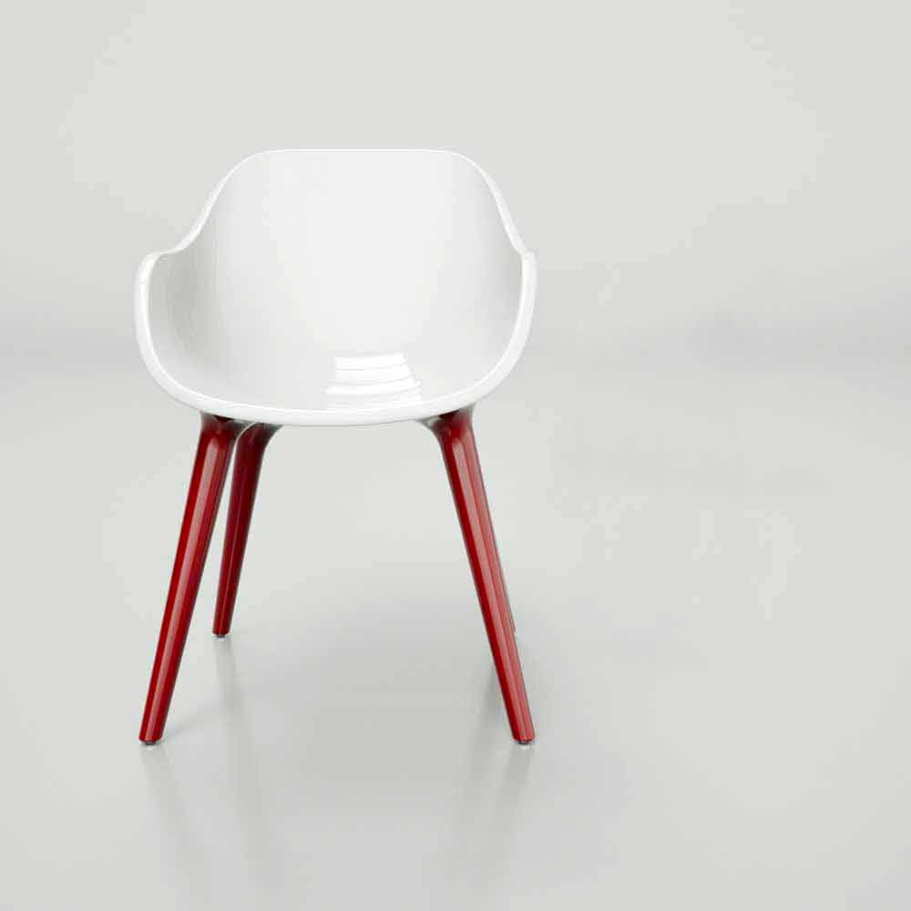 Mes të shkuarës dhe të ardhmes. Materiali: Sipërfaqja e ngurtë; Manù, një ndenjëse me formë organike dhe kthesa bujare, një përqafim i vazhdueshëm mes së ardhmes dhe së shkuarës. Këmbët e bashkuara në guaskë dhe linjat e saj të buta, të theksuara nga kombinime të shumta ngjyrash, i japin jetë një karrigeje të gjithanshme, kameleonike dhe të përjetshme. E disponueshme në versione monokromatike, monokromatike me kufi të bardhë, dy ngjyra; Sipërfaqja 100% e ngurtë;. Fund me llak me shkëlqim. E disponueshme ne ngjyra te ndryshme.
