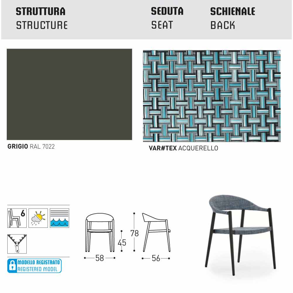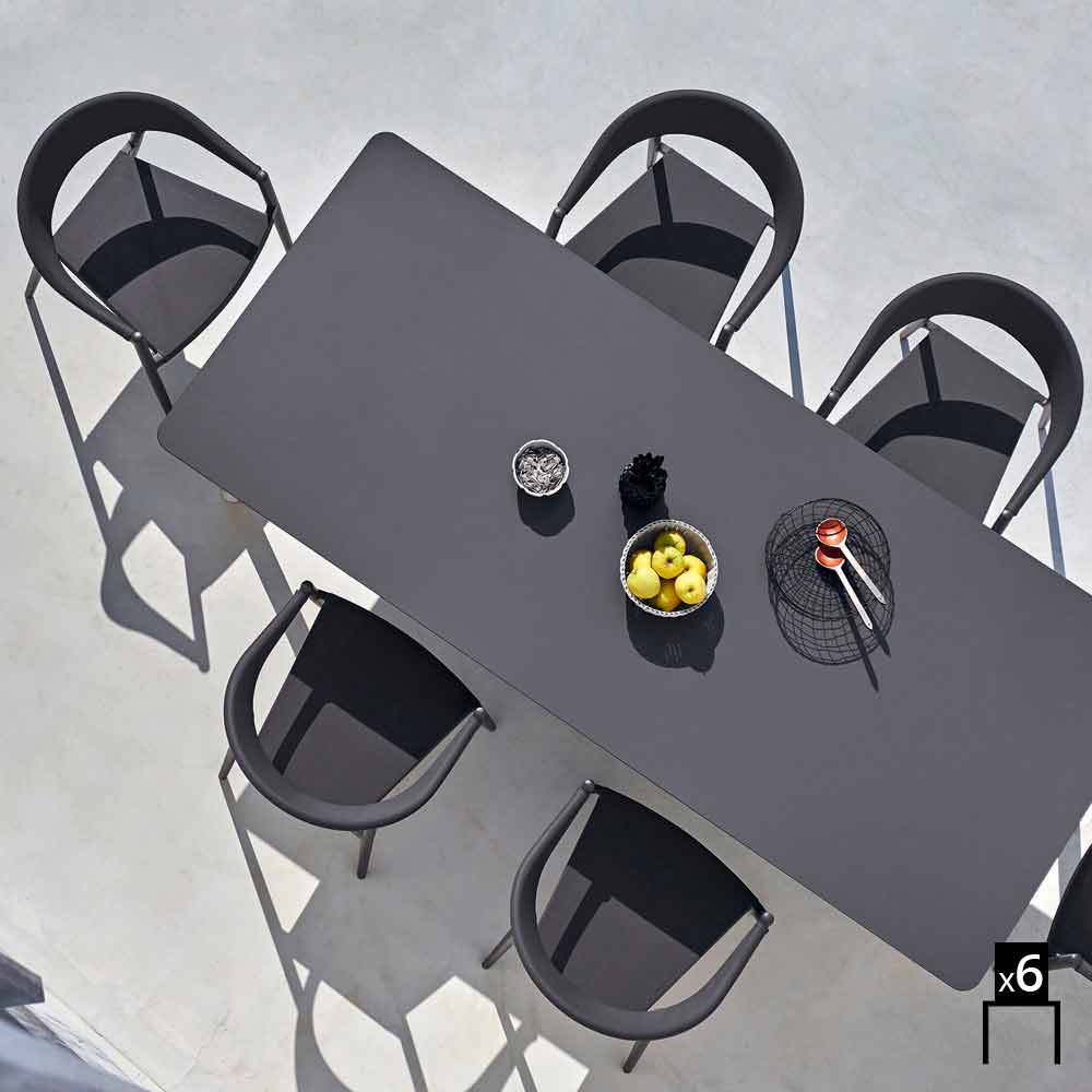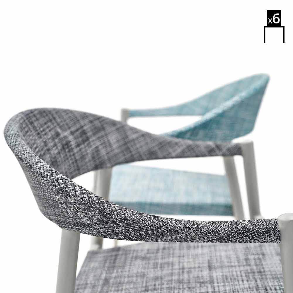 Ky grup përfshin 6 karrige kopshtesh me kornizë aluminiuim. Vendi dhe mbështetësja janë në dispozicion në pëlhurë Texture ose VAR # TEX . Kjo karrige është gjithashtu në dispozicion në versionin me mbështetësin e litarit. Falë modelit të tij të gjithanshëm, karrige ngrënie e kopshtit Clever mund të përdoret si në kopsht, ashtu edhe në dhomën e ndenjes.