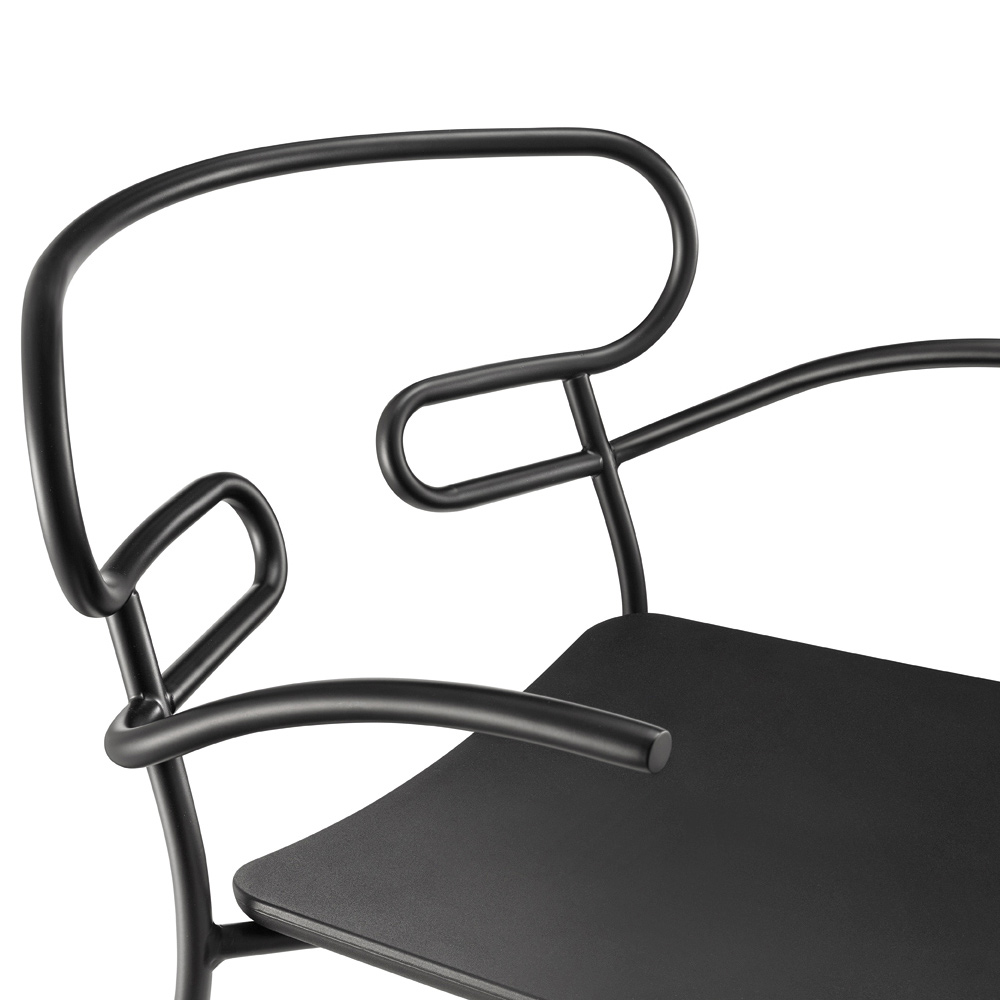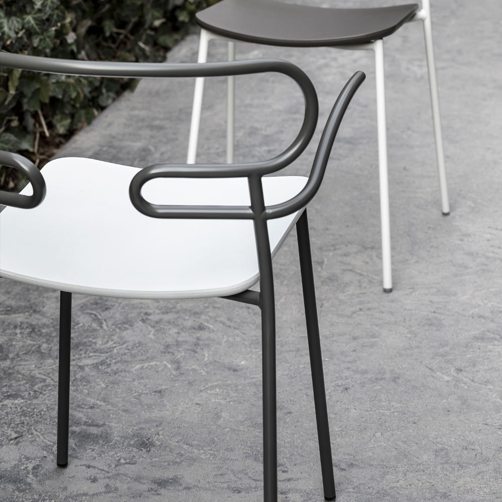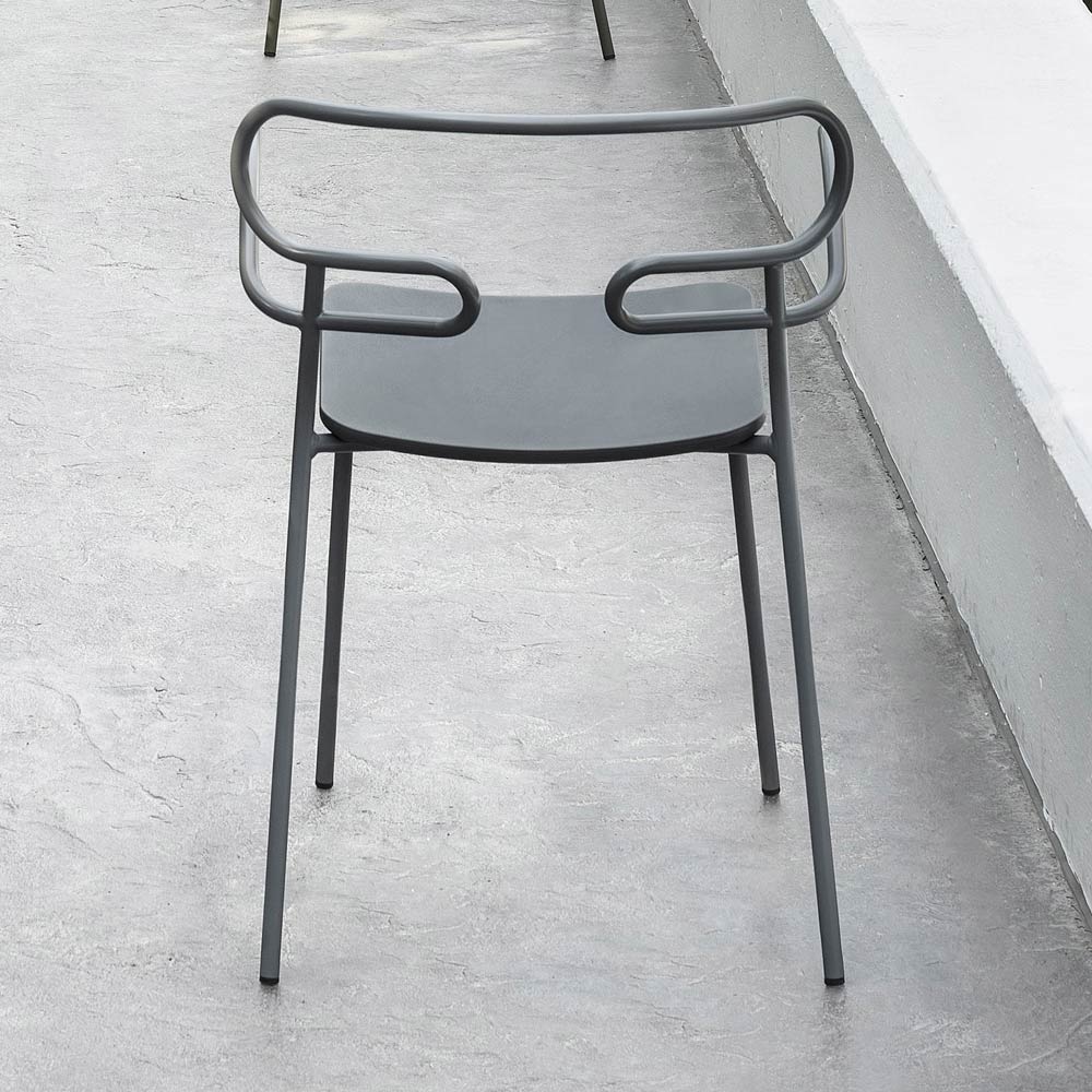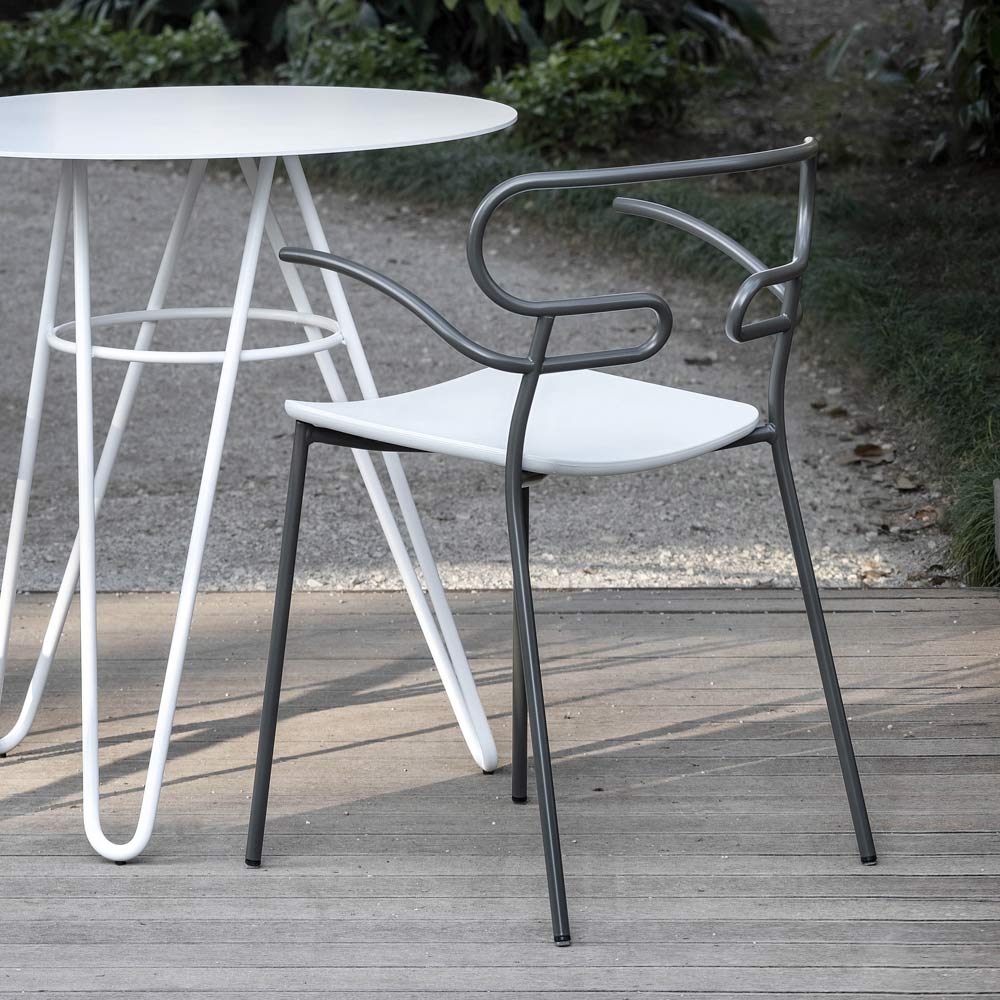 Karrige në natyrë prodhuar në Itali me strukturë metalike të pikturuar dhe sedilje poliuretani. E thjeshtë dhe thelbësore, kjo shtesë plotësohet në sajë të linjave të saj të lehta dhe formës së veçantë të mbështetëses së fituar të mbështetur në lakimin e një tubi të vetëm metalik, duke krijuar kështu një dizajn të pazakontë dhe avangardë. Ideale për zbukurimin e ambienteve tuaja të jashtme me personalitet si kopshte, veranda dhe tarraca, ka një tipar veçanërisht funksional që është mundësia e pirgimit për të marrë një zgjidhje praktike dhe të rregulluar lehtësisht duke optimizuar hapësirat tuaja kur karriget nuk përdoren.
