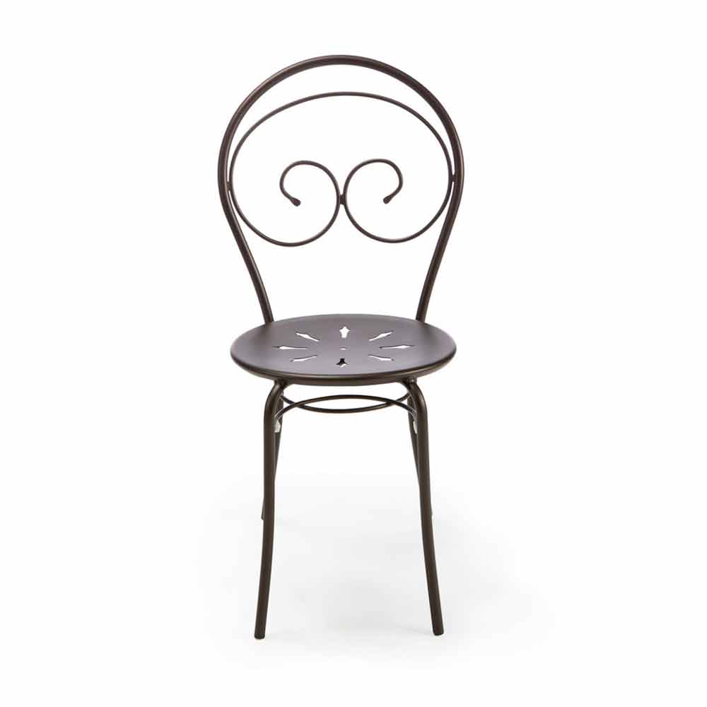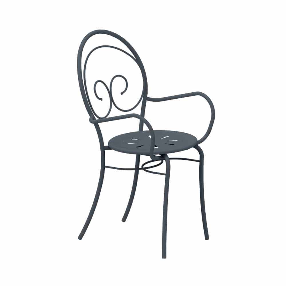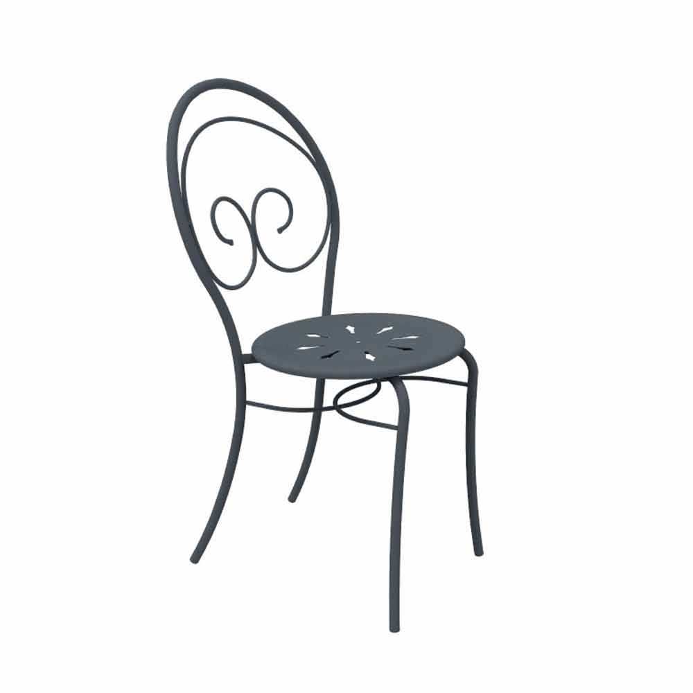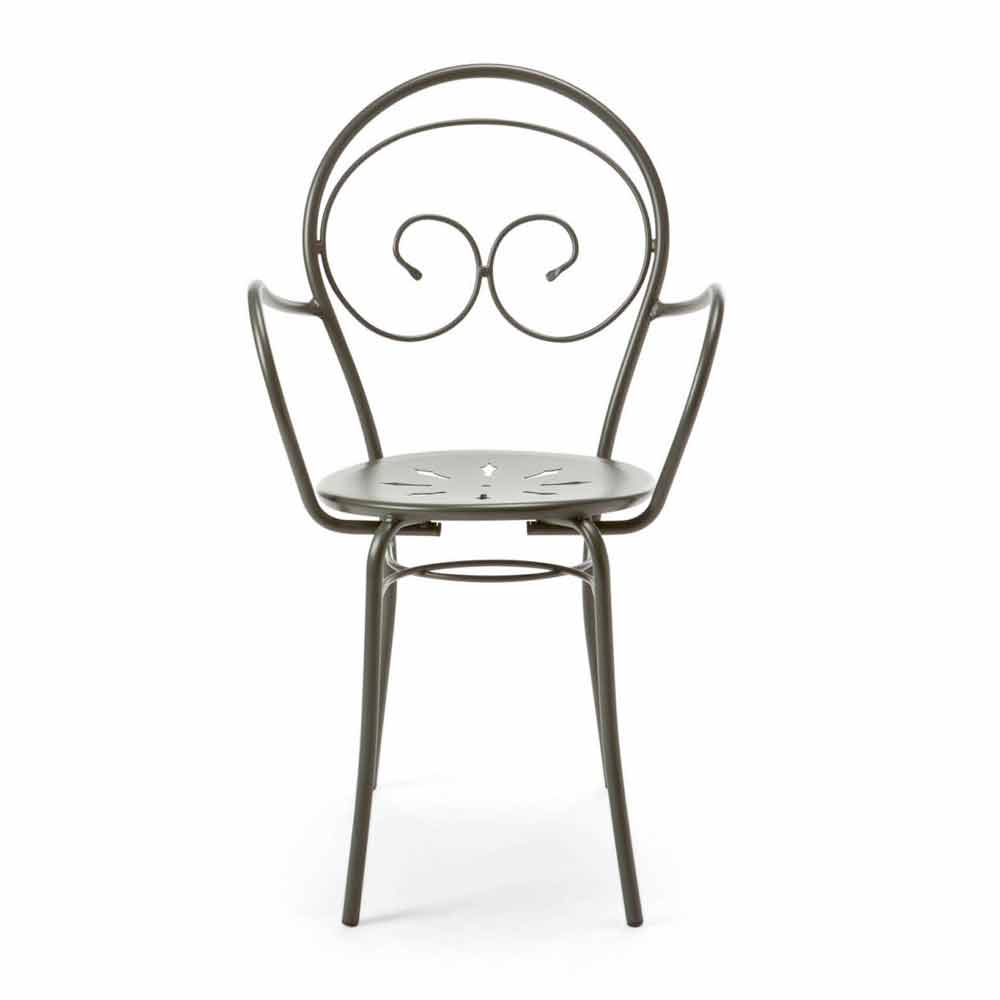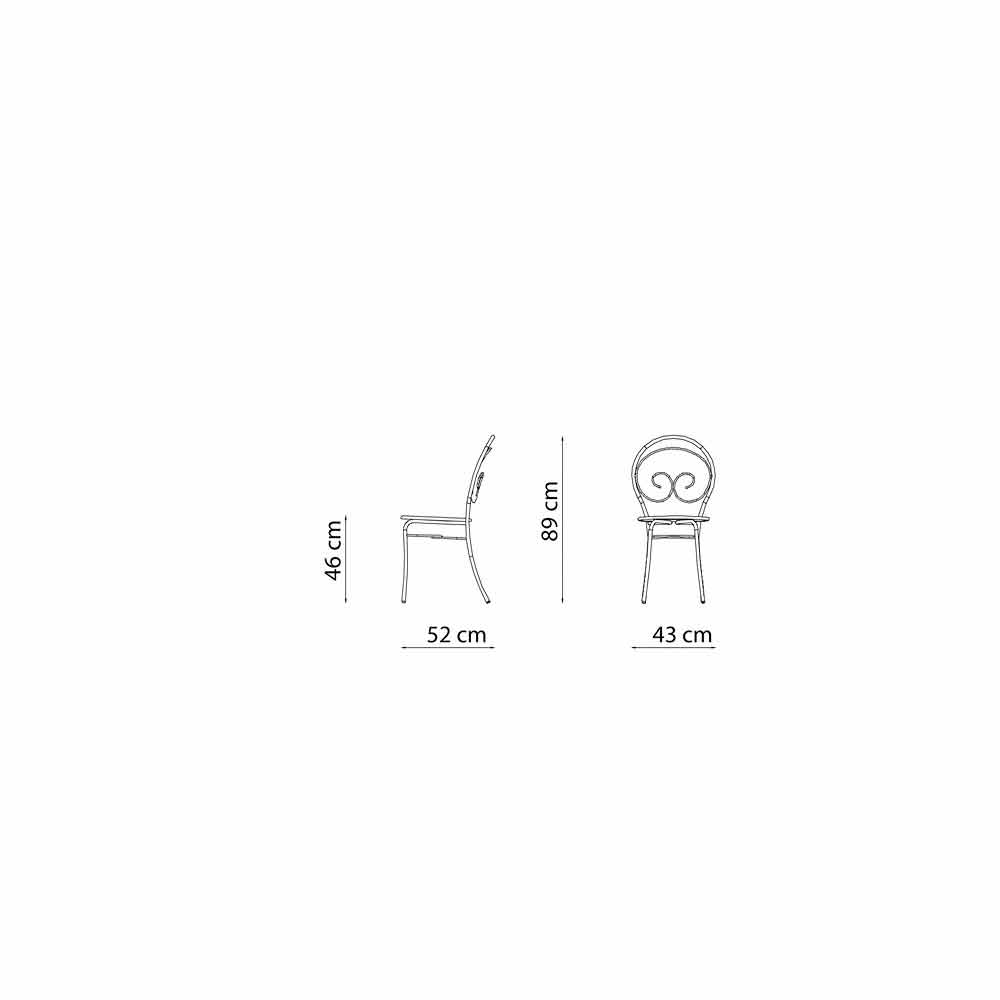 Karrige e jashtme e palosshme me ose pa mbështetëse krahësh, prej hekuri të galvanizuar me shtresë pluhuri. Prodhuar në Itali, 2 copë.
