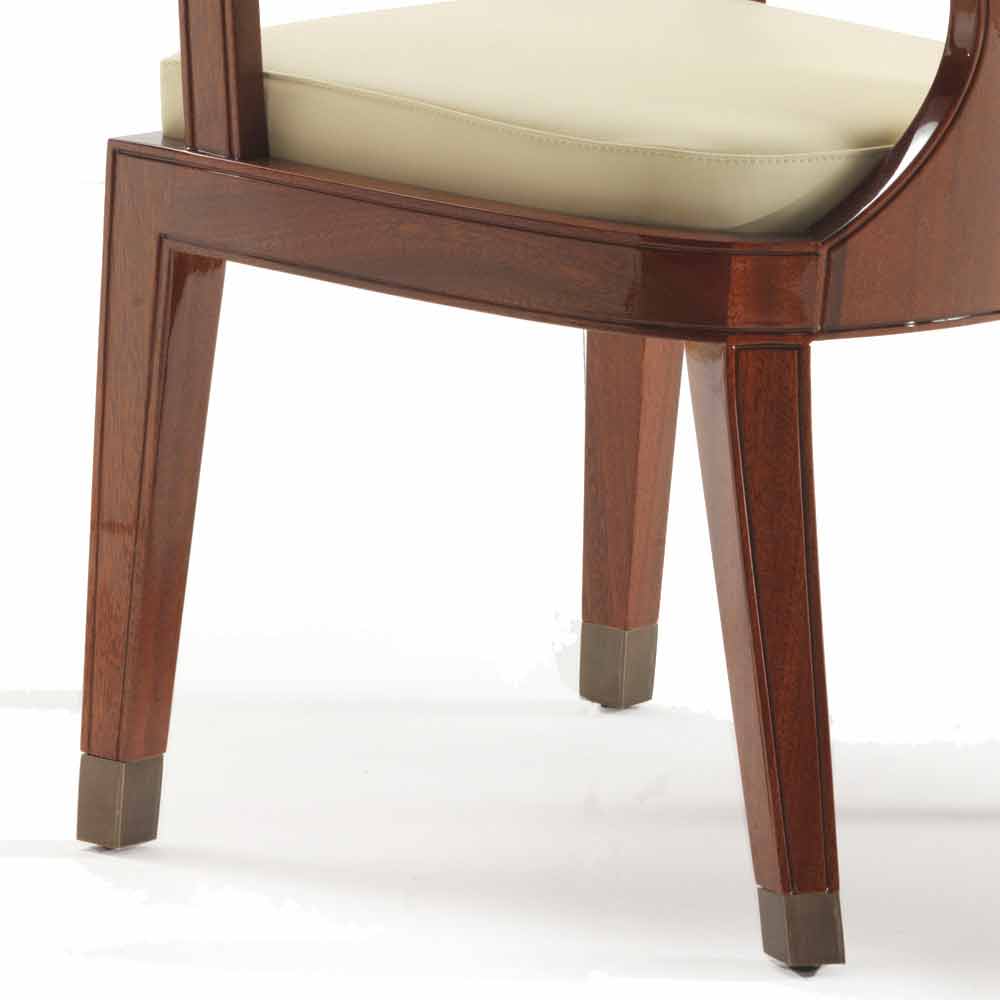 Dizenjoni karrige ngrënieje të veshur me susta në dru të qetë, L51xP53cm, Nicole Nicole është një karrige kuzhine / dhomë ngrënie e karakterizuar nga një dizajn i luajtur në kontrastin midis elementeve në stilin klasik, siç është dekorimi i shpinës dhe detajeve më bashkëkohore siç është forma e këmbëve të pasme. Pjesa e përparme e shpinës është në dru të butë, ndërsa pjesa e pasme është në dru të punuar. Selia është e mbushur dhe e mbuluar me lëkurë, këshilla është në bronz prej bronzi. Përfundoni në sofër të lëmuar.