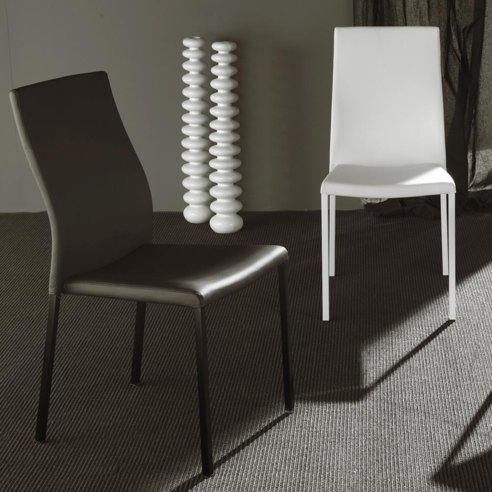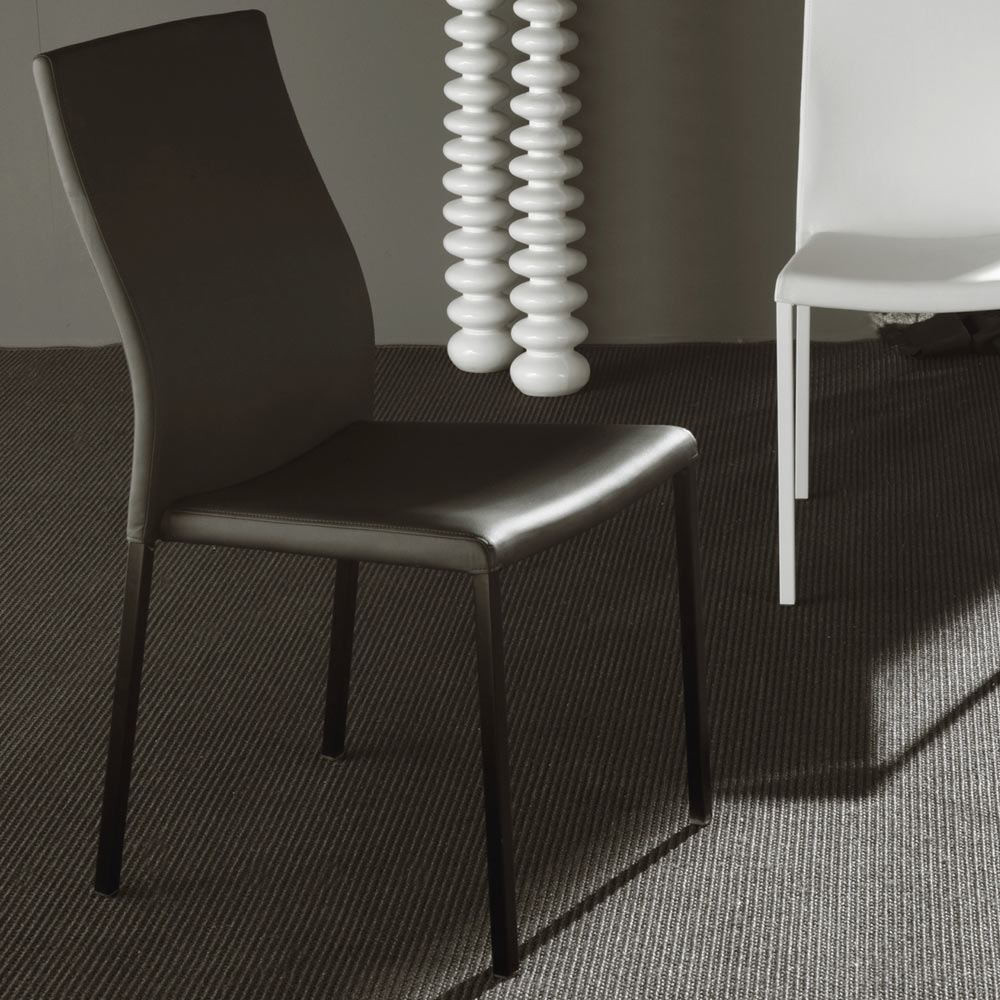 Sedilja dhe mbështetësja e mbuluar me lëkurë eko e lejojnë këtë pjesë të mobiljeve të jetë tepër e gjithanshme , e përshtatshme për të kompletuar çdo situatë shtëpiake dhe kontratë me karakter dhe personalitet . Një dizajn i lehtë dhe me shije e bën këtë karrige krejtësisht origjinale, të përshkruar nga një kombinim i përsosur estetike dhe praktike për të siguruar një ndikim të fortë në çdo kontekst.