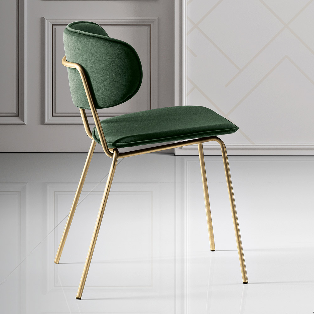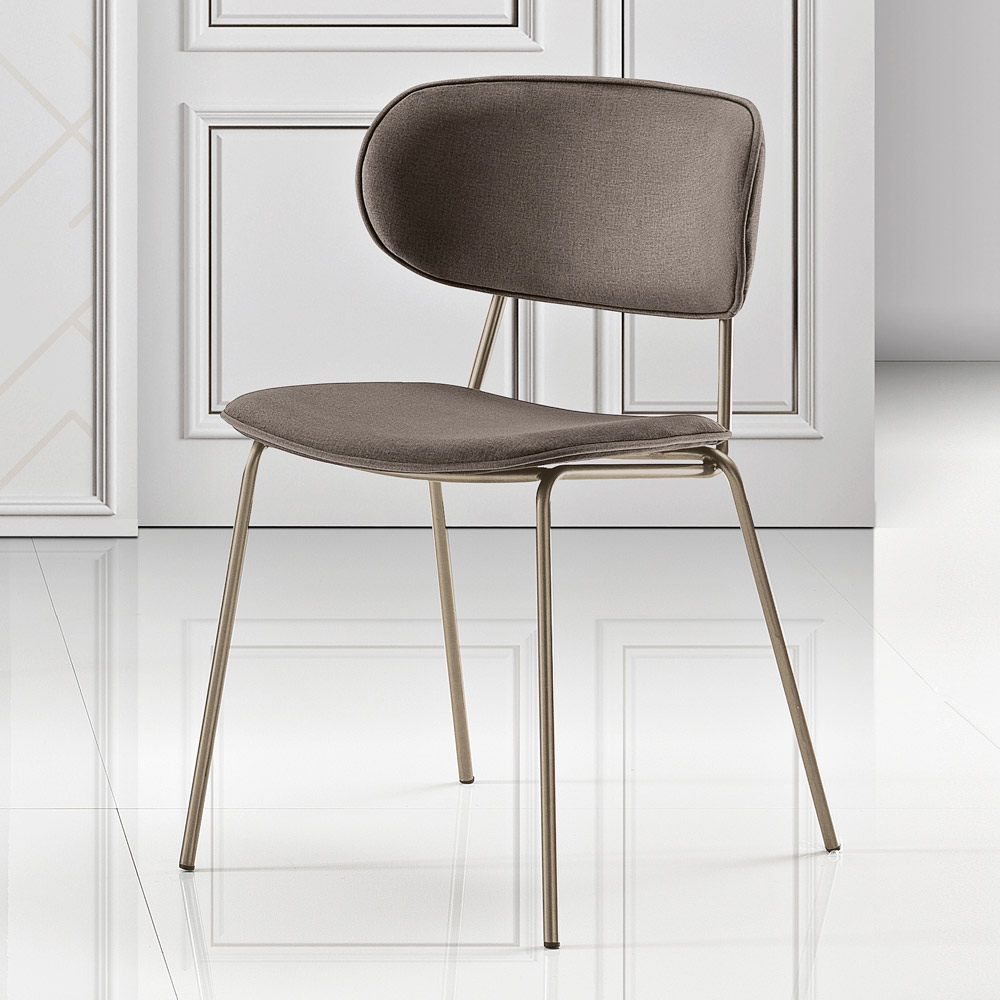 Kjo karrige është një xhevahir dizajni, perfekt për ata që duan të kombinojnë funksionalitetin dhe stilin. Sedilja dhe mbështetësja e lakuar janë të mbuluara me një pëlhurë, duke ofruar një eksperiencë të rehatshme dhe të stilit të uljes. Silueta e thjeshtë por e sofistikuar e karriges theksohet nga këmbët metalike , të cilat shtojnë një prekje të ngrohtësisë moderne dhe një ndjenjë lehtësie vizuale.