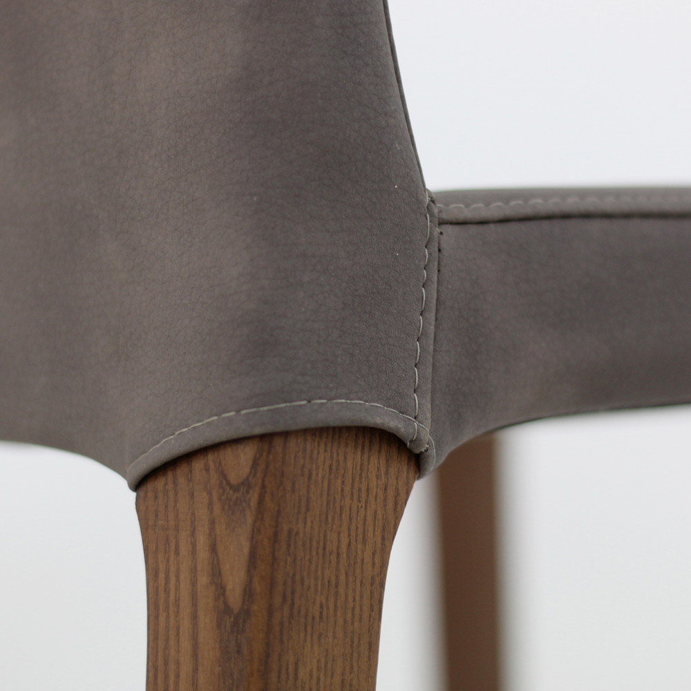 Karrige ngrënieje tërësisht e prodhuar në Itali me strukturë druri hiri mesatar me njolla arre dhe sedilje lëkure imituese ngjyrë dheu. Karrige me një hijeshi të përjetshme, kombinon elegancën e drurit dhe sqimën e imitimit të lëkurës, duke krijuar një riinterpretim modern perfekt për të arreduar çdo dhomë ndenjeje. Është ideal për përdorim shtëpiak dhe me kontratë falë përfundimeve të thjeshta dhe lineare. Materialet e përdorura për ndërtimin garantojnë cilësi dhe rezistencë edhe me kalimin e kohës.