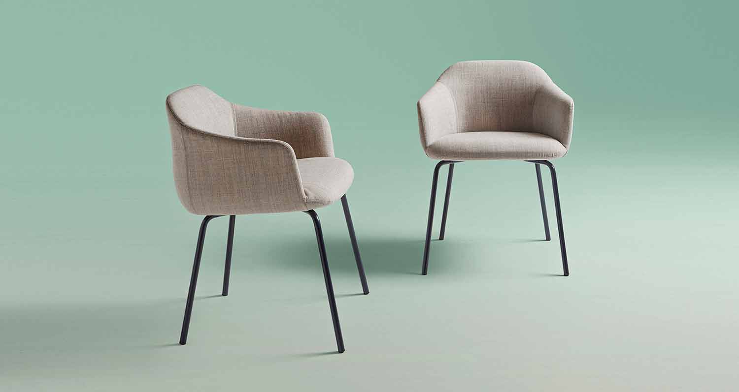 Dizajni i kësaj karrigeje të dhomës së ngrënies merr frymëzim nga delikatesa e luleve, duke dhënë komoditetin dhe butësinë e vendosjes në një syth falë linjave të vazhdueshme dhe të përkulura të mbështetëses dhe sediljes, të dyja të mbushura me shkumë poliuretani dhe të mbështetura në një hekur të hollë. strukturën.