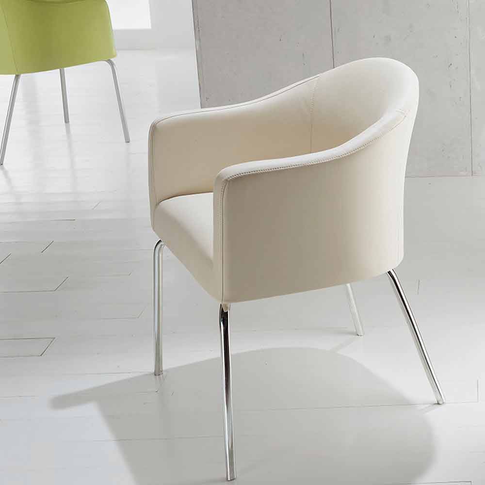 ka një kornizë metalike të kromuar dhe një vend prej lëkure faux, të disponueshme në hije të ndryshme ngjyrash.