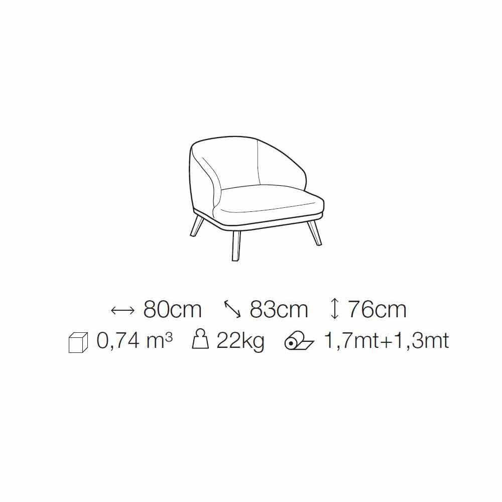 Kolltuk i imponuar dhe i rafinuar i dhomës së ndenjes i prodhuar në Itali me bazë në dru të fortë me përfundim eukalipt dhe guaskë të mbuluar me pëlhurë me dy ngjyra plotësisht i lëvizshëm. Struktura e brendshme prodhohet me panele druri të mbuluara në Tecnoform ndërsa mbështetësja dhe jastëku i sediljes janë të mbushura me shkumë poliuretani jo-deformues të mbuluar gjithashtu në Tecnoform. Format e thjeshta dhe linjat elegante i japin jetë një kolltuk të dizajnuar për momentet e shkëlqyera kushtuar relaksimit, e cila arrin të bëhet protagoniste duke rikrijuar ndjenjën e një përqafimi mikpritës falë strukturës së saj veçanërisht të butë dhe të rehatshme. Përmasat e tij të mëdha e lejojnë atë të mbushë çdo zonë të jetesës me personalitet, duke rezultuar në të njëjtën kohë diskrete dhe e matur, e karakterizuar nga eleganca dhe thjeshtësia, elemente themelore për një vend të gjithanshëm dhe elegant.