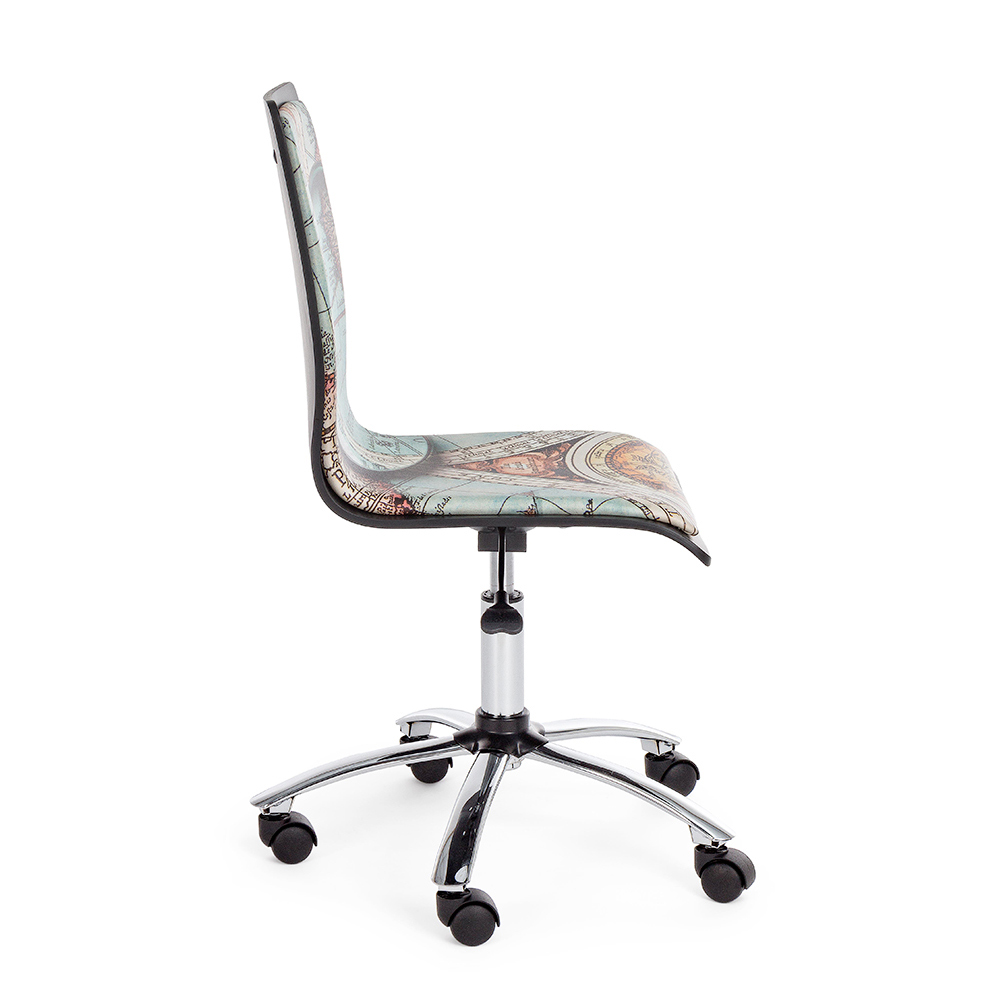 Karrige zyre çeliku me rrota dhe ndenjëse prej lëkure eko me printim harte.