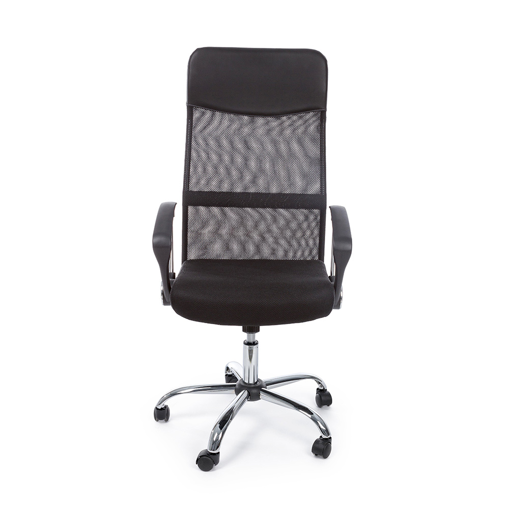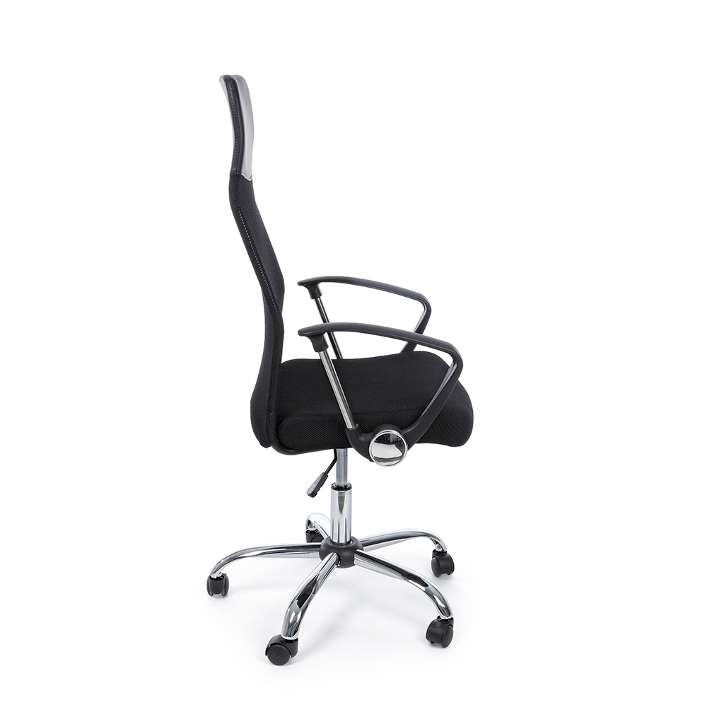 Ky kolltuk zyre është bërë me bazë solide prej çeliku të kromuar me diametër 60 cm dhe rrota najloni . Sedilja e rregullueshme në lartësi është e mbushur dhetë veshura nëPëlhurë 100% poliester dhe pëlhurë rrjetë membështetëse krahësh prej plastike (polipropileni) dhe çeliku të kromuar. Dizajn për t'u mbledhur.