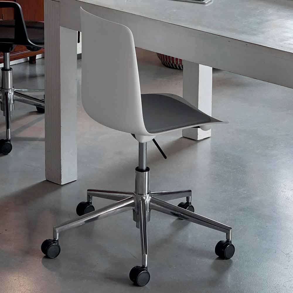 Karrige zyre në alumini të lëmuar dhe polipropileni me rrota Made in Italy, 2 copë.