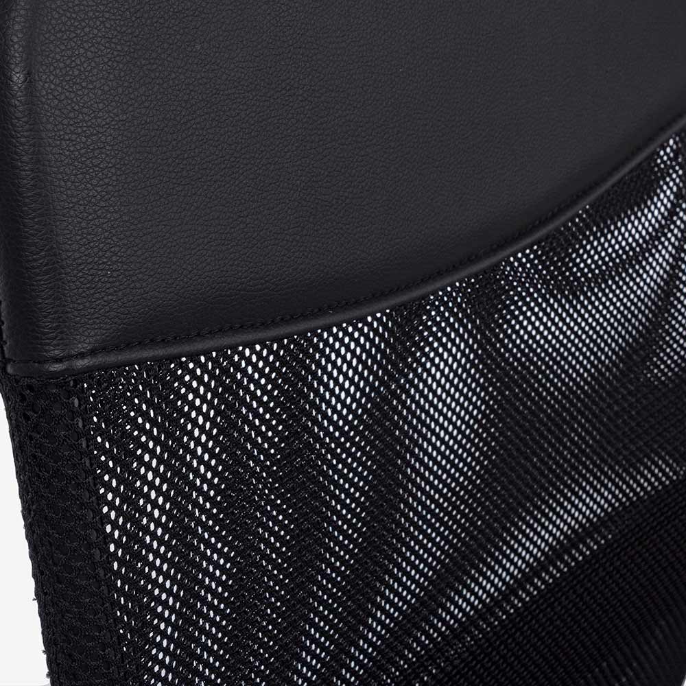Kolltukë zyre e rrotullueshme prej çeliku dhe rrjetë e zezë me mbështetëse krahësh.
