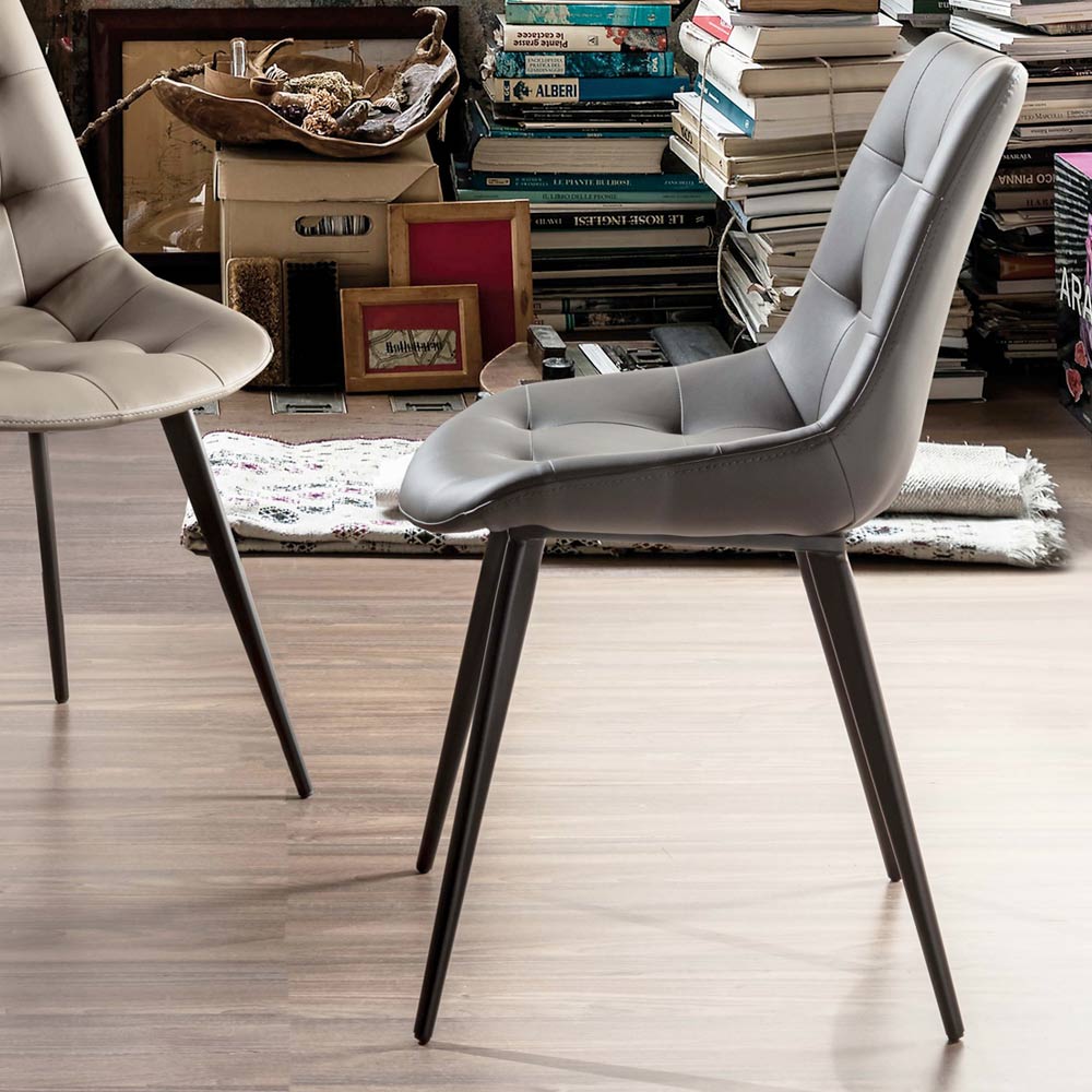 Karrige ideale për dhomën e ngrënies ose kuzhinën me sedilje të mbuluar me eko-lëkurëdhe baza në metal të ngjyrosur me të zezë . Komoditeti dhe funksionaliteti janë tiparet kryesore të kësaj karrige të mrekullueshme me tipare të thjeshta dhe thelbësore por në të njëjtën kohë me elegancë ekstreme. Përdorimi i eko-lëkurës dhe i mbushjes me tegela i jep produktit një pamje të sofistikuar që është ideale për të kombinuar me stile të rafinuara dhe me stil të mobiljeve të karakterizuara nga tone neutrale dhe diskrete. Nga ana tjetër, 4 këmbët metalike përfaqësojnë elementin bashkëkohor që e bën atë një karrige të vërtetë moderne, e aftë të përshtatet në ambiente me një shije më tradicionale, pra, në të cilat luhet bukuria e kontrasteve.