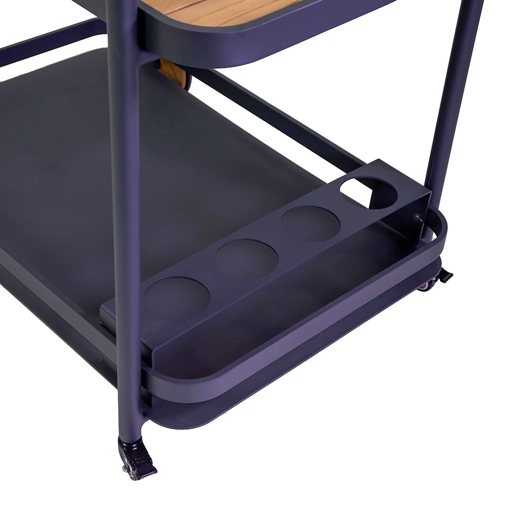 Pjesa e sipërme e drurit të tik shton një ngrohtësi natyrale dhe rezistencë superiore ndaj elementeve, duke e bërë atë jo vetëm të bukur, por edhe të qëndrueshëm. E kompletuar me një raft të gjerë të poshtëm , kjo karrocë ofron hapësirë të bollshme për ruajtjen e pjatave, gotave dhe aksesorëve të servirjes, ndërsa mbajtësja e integruar e shisheve siguron që pijet tuaja të jenë gjithmonë pranë.