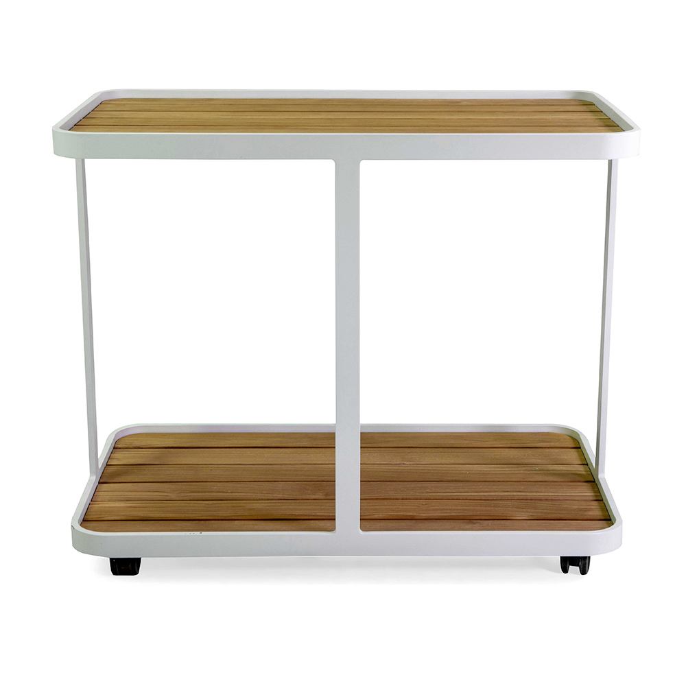 Kjo karrocë elegante alumini e veshur me pluhur është ideale për të sjellë një prekje sofistikimi dhe praktike në hapësirën tuaj të jashtme. Dizajni modern, minimalist plotësohet nga maja prej druri dru tik , të njohur për forcën dhe qëndrueshmërinë e tyre, duke e bërë këtë karrocë të përsosur për përdorim të brendshëm dhe të jashtëm. E pajisur me rrota të lehta për t'u manovruar, lejon transportin e lehtë të pijeve, ushqimeve ose bimëve, duke maksimizuar funksionalitetin pa sakrifikuar stilin.