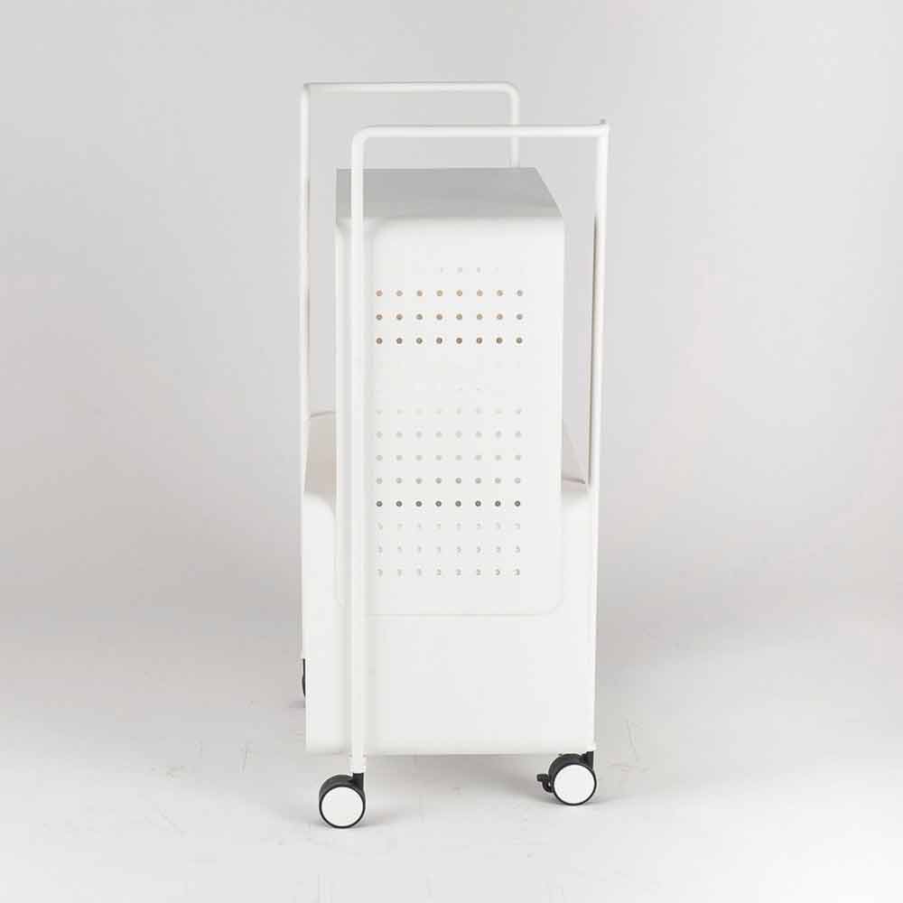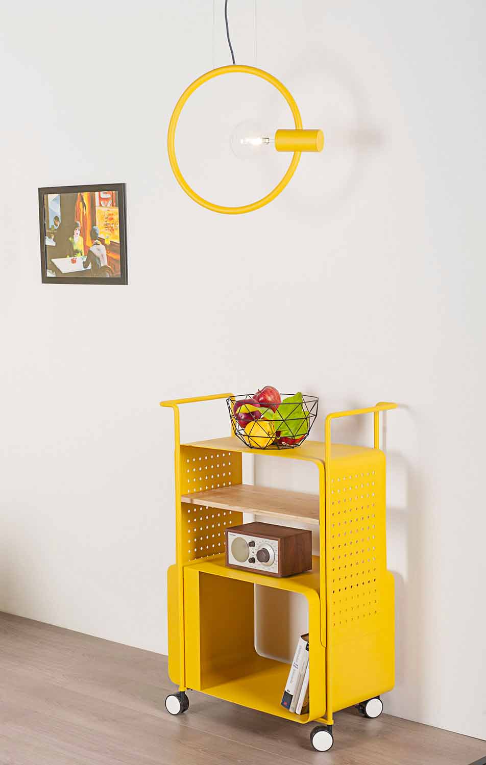 Kjo karrocë përfaqëson një element veçanërisht të shkathët pasi mund të përdoret në situata dhe mjedise të ndryshme si kuzhina, dhoma e ndenjes apo edhe zyra. Falë dizajnit të tij të ri dhe modern, është ideal për ambiente me orendi ekstravagante dhe të pazakonta por edhe për stile më minimale për t'i dhënë ngjyra dhe personalitet. E bërë krejtësisht në Itali , struktura e saj është në çelik të pikturuar RAL dhe përfshin 4 rafte praktike në të cilat mund të ruhen objektet më të larmishme, njëra prej të cilave është në dru hiri e cila ndihmon për të dhënë një nuancë elegance. Ai gjithashtu ka një grup prej 4 rrotash që ju lejojnë të lëvizni karrocën lehtësisht përmes dy dorezave anësore.