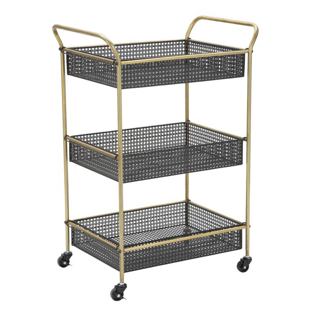 Karrocë ushqimore e bërë prej hekuri me strukturë të artë të përfunduar e pajisur me 3 rafte dhe e kompletuar me rrota. Një dizajn i gjithanshëm,modern dhe funksional ideal për hapësirat shtëpiake siç janë dhomat e ngrënies ose kuzhinat ku është një shtesë praktike dhe e dobishme dhe në të njëjtën kohë e përsosur për kompletimin e mobiljeve me një prekje të personalitetit magjepsës .