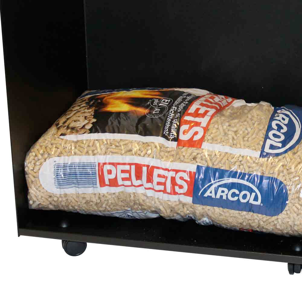 Kjo karrocë me qese peleti është një objekt praktik i projektuar për të lehtësuar menaxhimin dhe ruajtjen e karburantit për oxhakun ose sobën tuaj me pelet. Dizajni i fortë dhe ngjyra e zezë përzihen në mënyrë diskrete me çdo mjedis shtëpiak, duke ofruar një estetikë të pastër që nuk kompromenton funksionalitetin.
