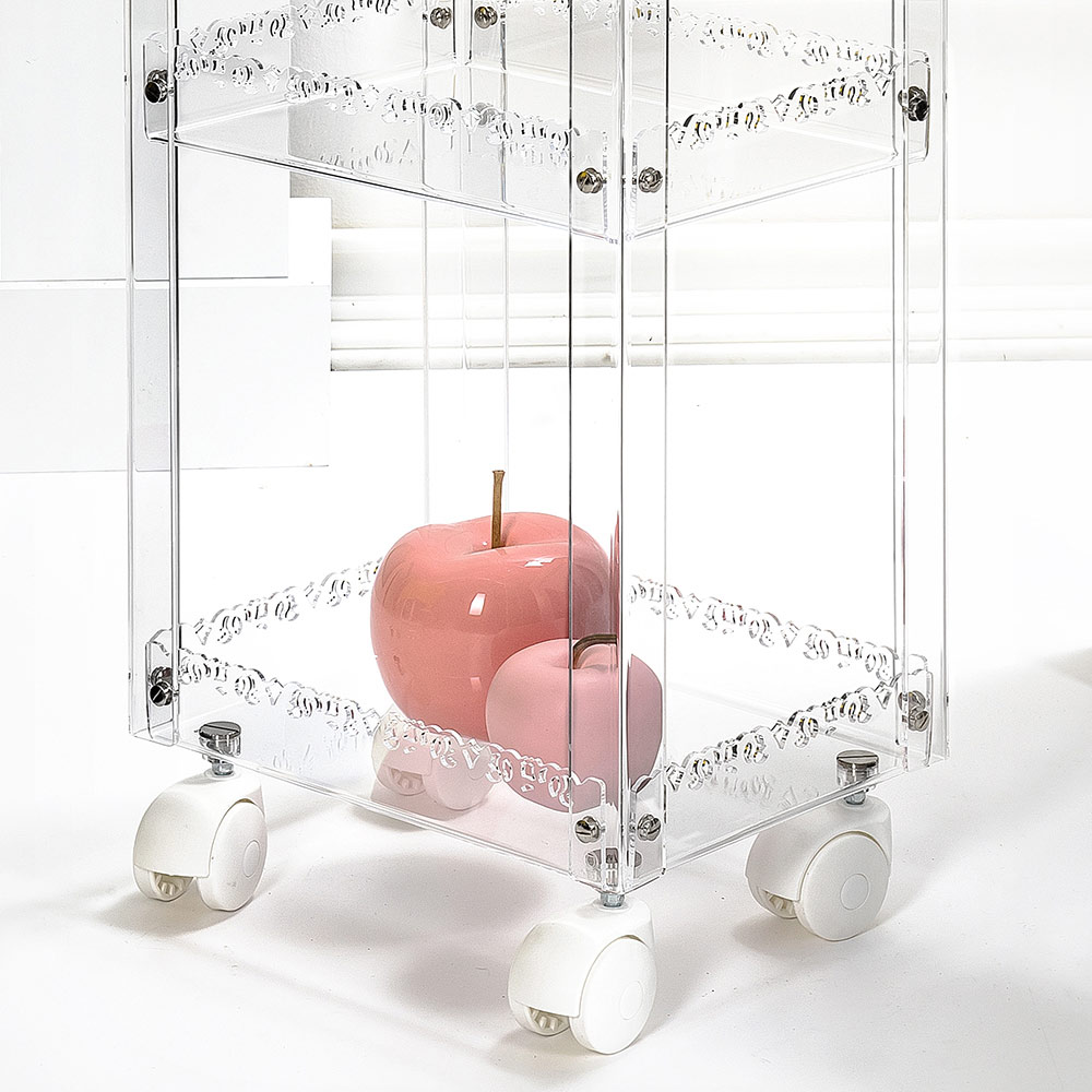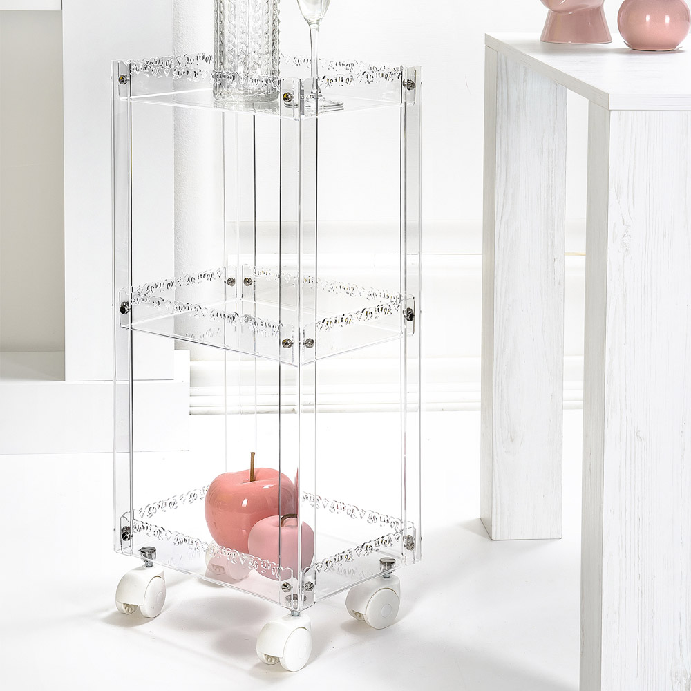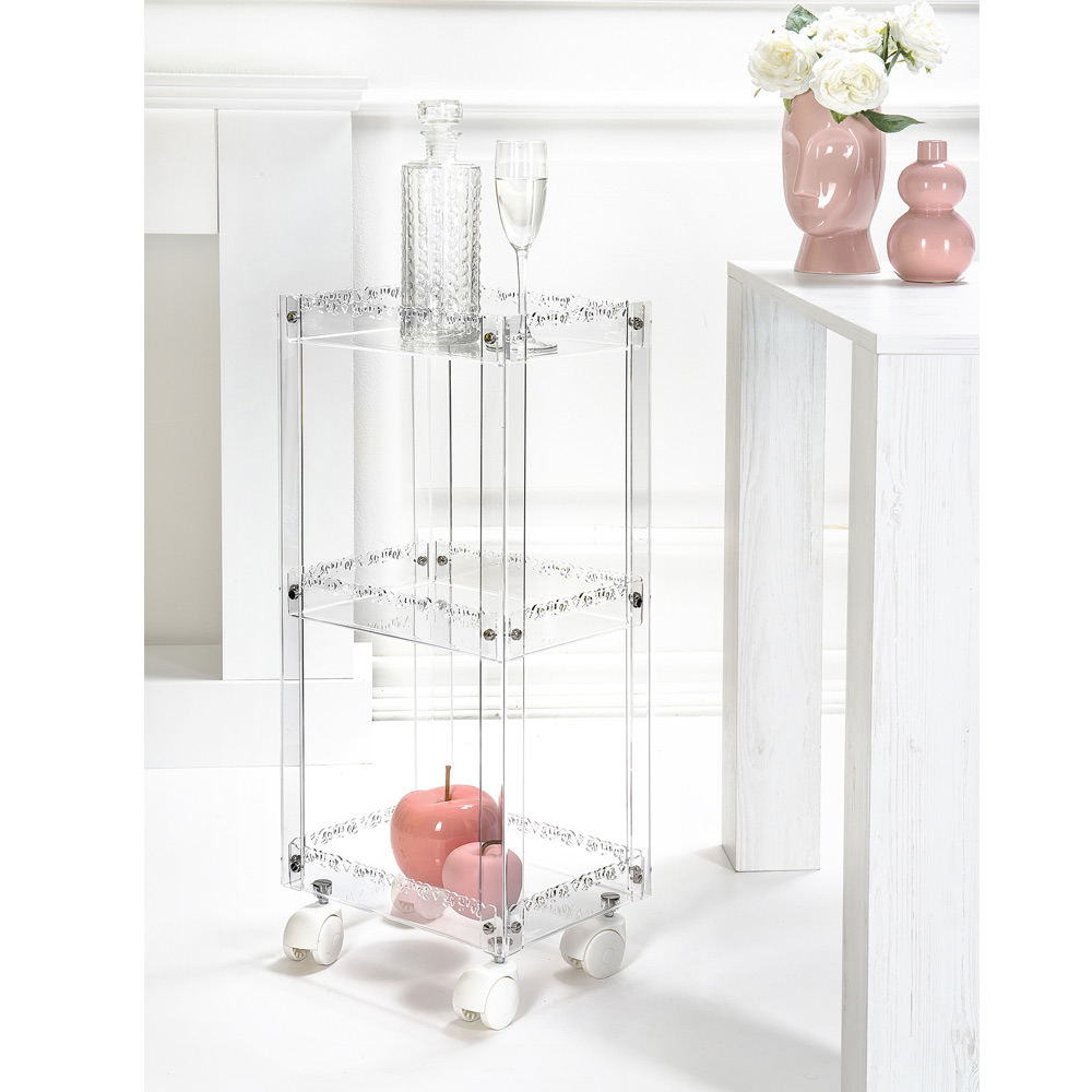 Karrocë ushqimore praktike dhe e gjithanshme, e bërë nga pleksiglas100% PMMA nga polimer i virgjër. Një produkt me një dizajn modern dhe linear i karakterizuar nga prania e 3 rafteve të cilat e bëjnë atë shumë të përdorshëm si karrocë ndihmëse në ambientin e shtëpisë. Një plotësues në të cilin estetika takohet me funksionalitetin. E konceptuar, projektuar dhe prodhuar në Itali , me materiale të cilësisë së lartë .