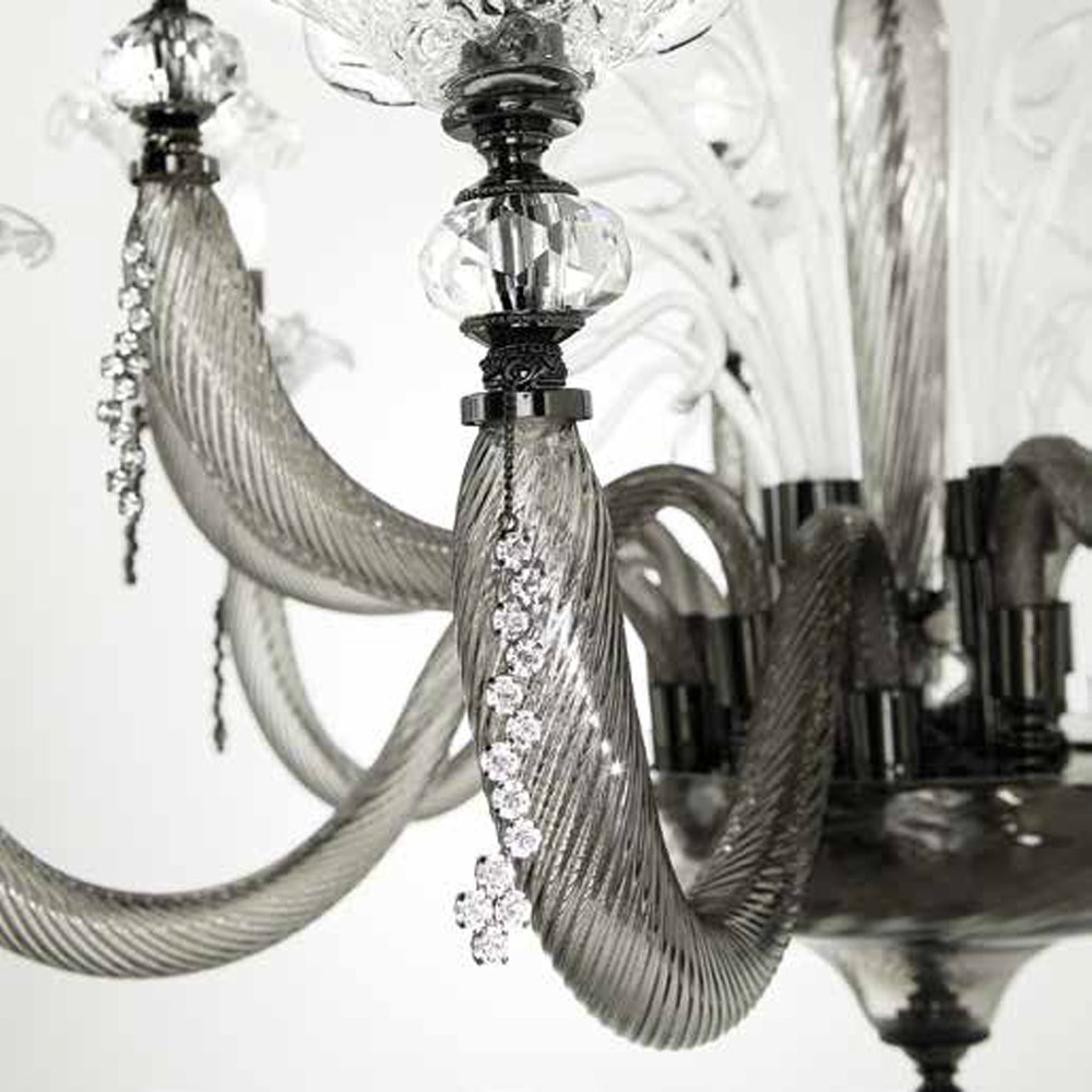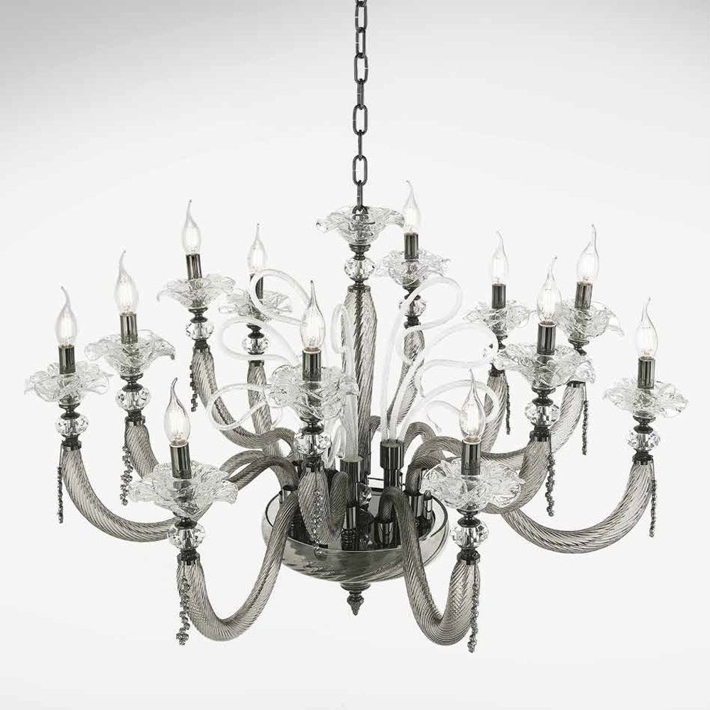 Llambadar 12 dritash i punuar me dorë në xham të fryrë dhe dekorime me lule, luks italian.