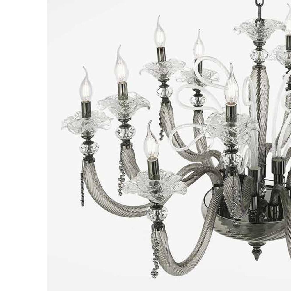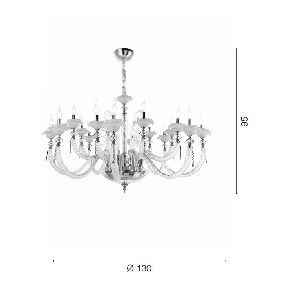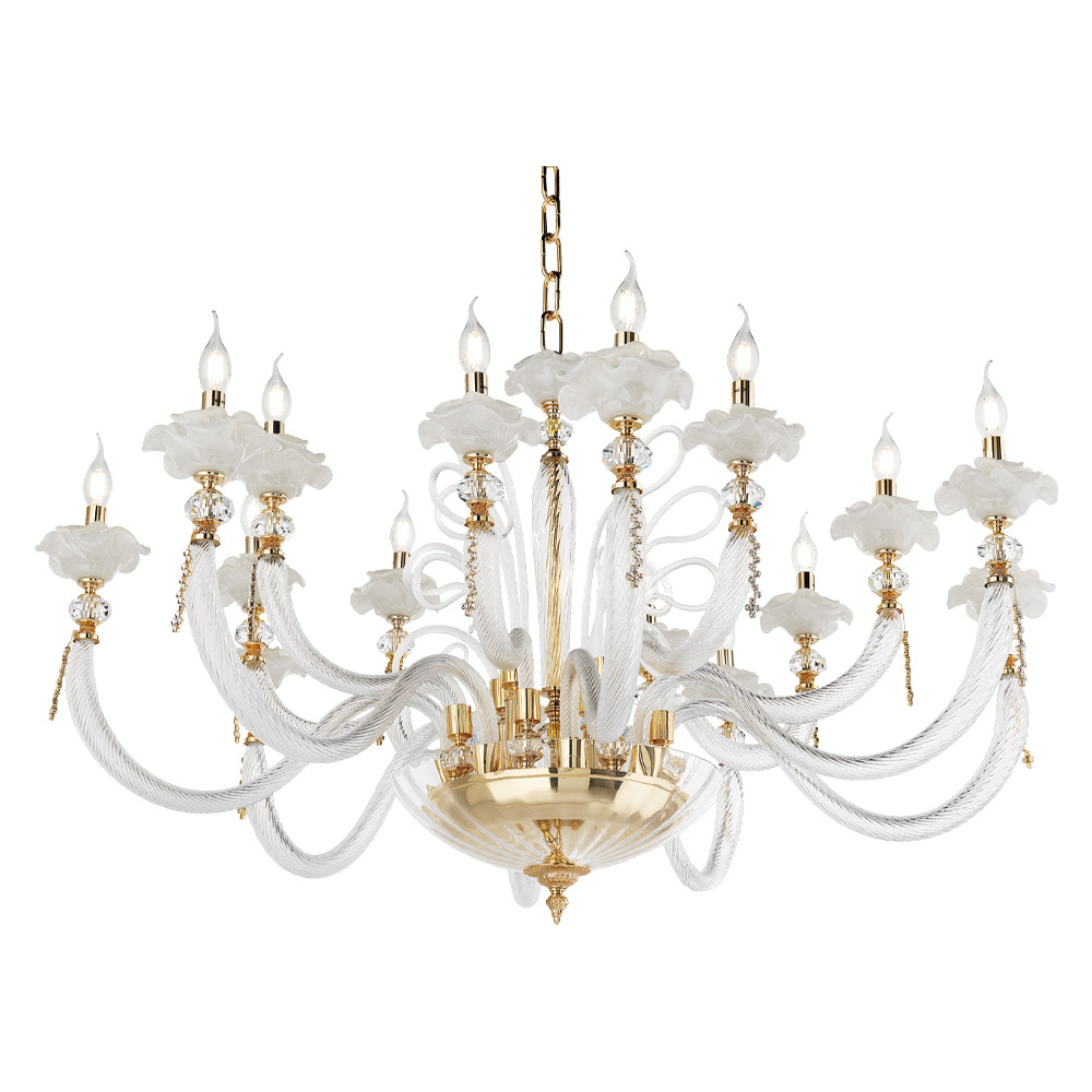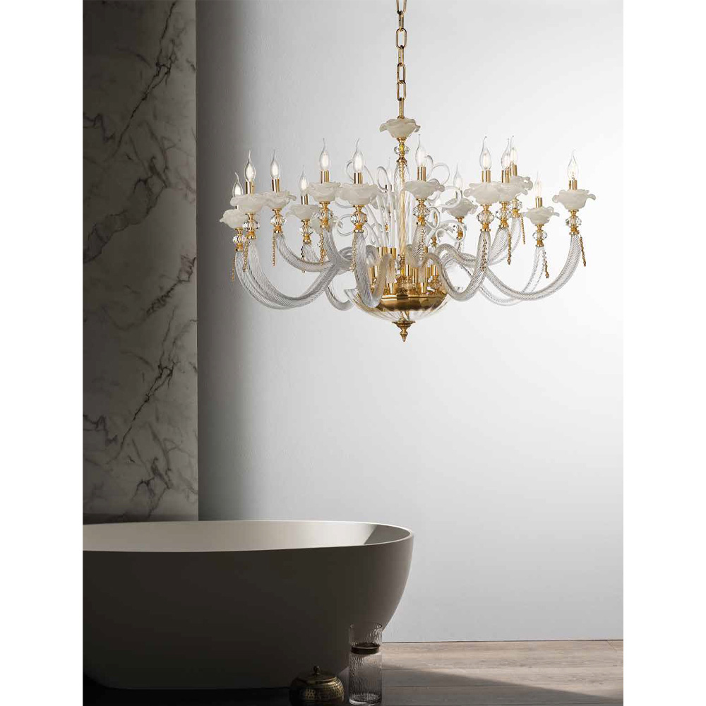 Llambadar 16 dritash i punuar me dorë në xham të fryrë dhe dekorime me lule, luks italian.