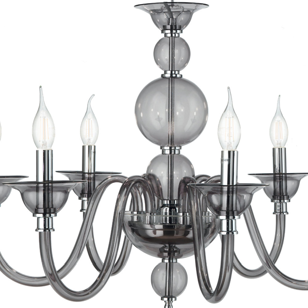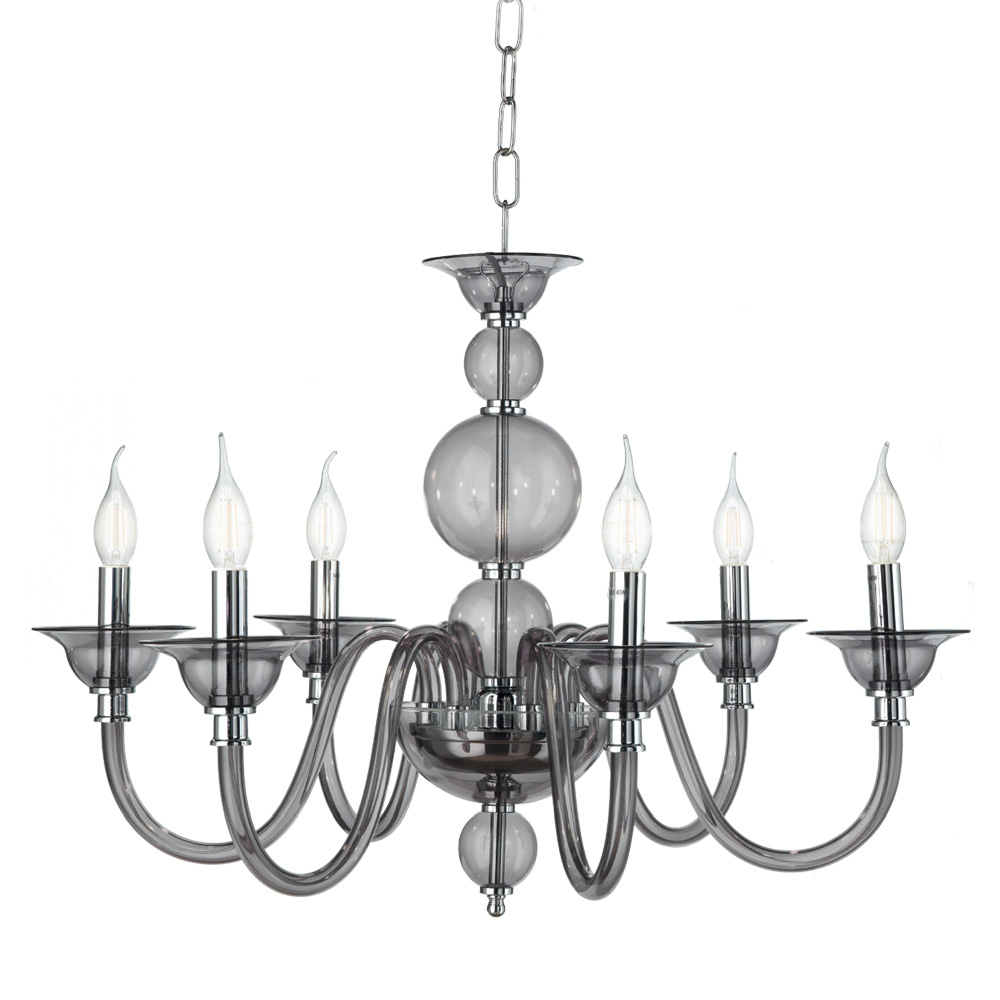 Llambadar klasik me 6 drita në metal krom dhe xham të tymosur të punuar me dorë, prodhuar në Itali.