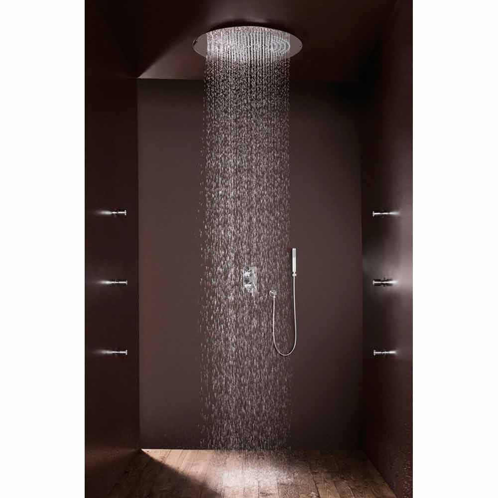 Koka e dushit Dream Oki Flat Ø 370 mm, me drita LED, një transformator të tensionit të ulët, tastierë kontrolli dhe lidhës fleksibël të ujit.