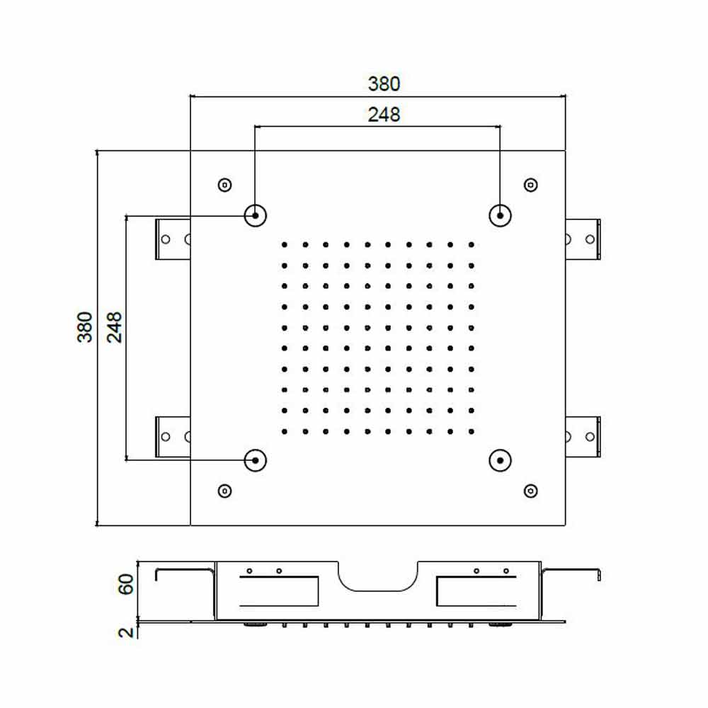 Kokë dushi prej çeliku katror me avion shiu dhe nebulizatorë, produkt me cilësi të lartë Prodhuar në Itali.