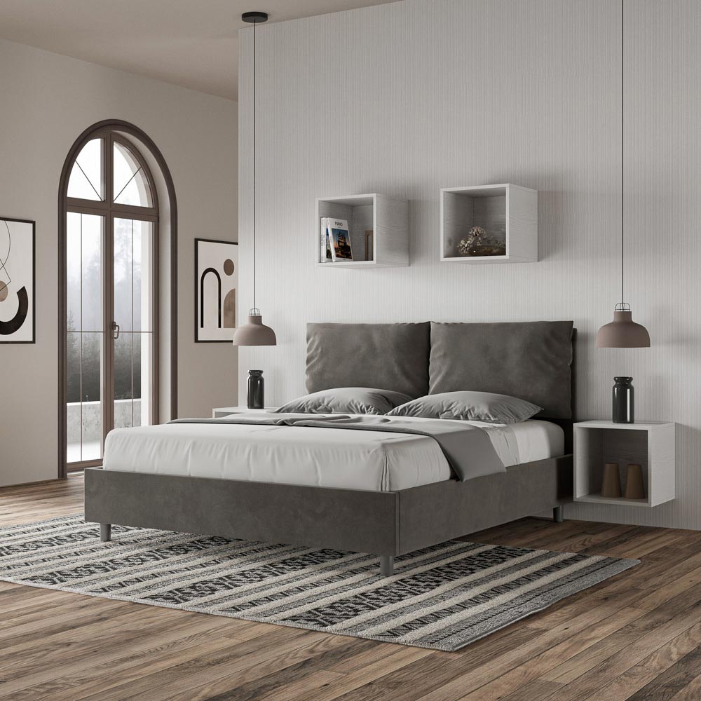Krevat dopio i mbushur 160x200 cm i bërë nga panele kartoni dhe i mbuluar me mikrofibër , i prodhuar tërësisht në Itali. Ky krevat dopio me kornizë të veshur me tapiceri mishëron në mënyrë të përkryer avantazhet e një krevati të veshur me tapiceri: rehatinë, stilin bashkëkohor, funksionalitetin dhe përdorimin efikas të hapësirës . Ky krevat, me kokën e tij të gjerë dhe të mbushur , ofron një kënd relaksues ideal për të lexuar ose për të parë televizor, duke i dhënë një pamje më të këndshme dhomës suaj të gjumit. Elegant dhe me stil, ky krevat është i veshur me mikrofibër, duke e bërë pastrimin të shpejtë dhe të lehtë: thjesht fshijeni me një leckë mikrofibre për ta mbajtur të shkëlqyeshëm.