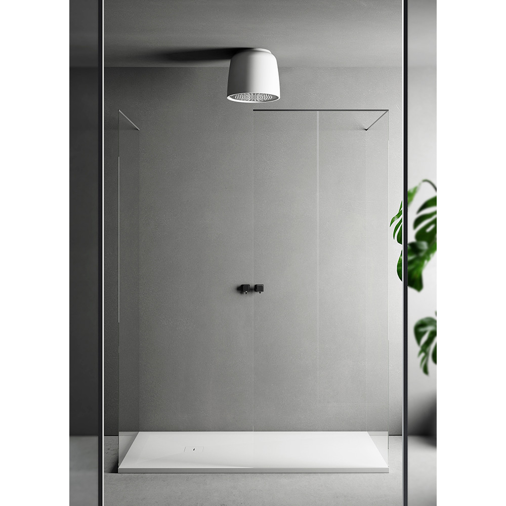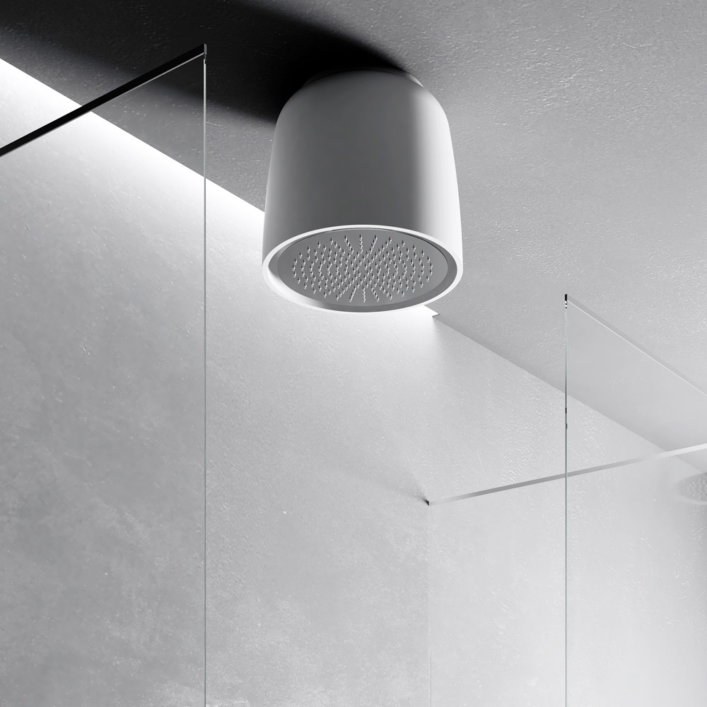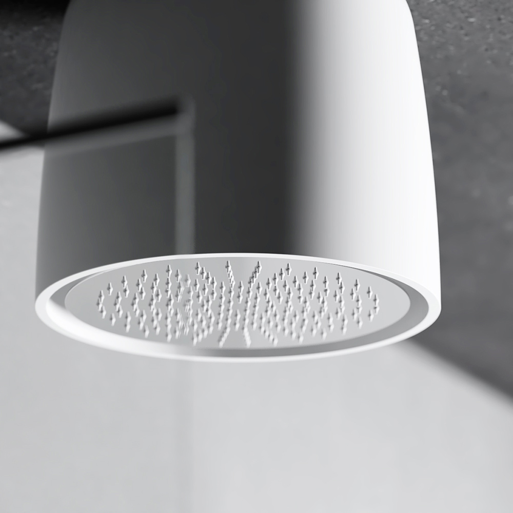 Prodhuar në Itali. Kjo kokë dushi me dizajn minimalist është një kryevepër e funksionalitetit dhe stilit modern . Finitura e bardhë mat dhe forma cilindrike e bëjnë atë një pikë qendrore elegante në çdo banjë bashkëkohore, ndërsa hapja bujare e spërkatjes siguron një përvojë të këndshme dhe relaksuese dushi, të ngjashme me reshjet natyrore. Instalimi i tij në tavan ofron një pamje të pastër dhe të integruar , duke liruar hapësirë dhe duke reduktuar rrëmujën vizuale. Çdo aspekt i kësaj koke dushi është projektuar duke pasur parasysh mirëqenien dhe rehatinë , duke e shndërruar larjen e përditshme në një përvojë luksi dhe relaksi . Është shtesa perfekte për këdo që kërkon të ngrejë rutinën e tyre të kujdesit personal në një moment kënaqësie të pastër shqisore .