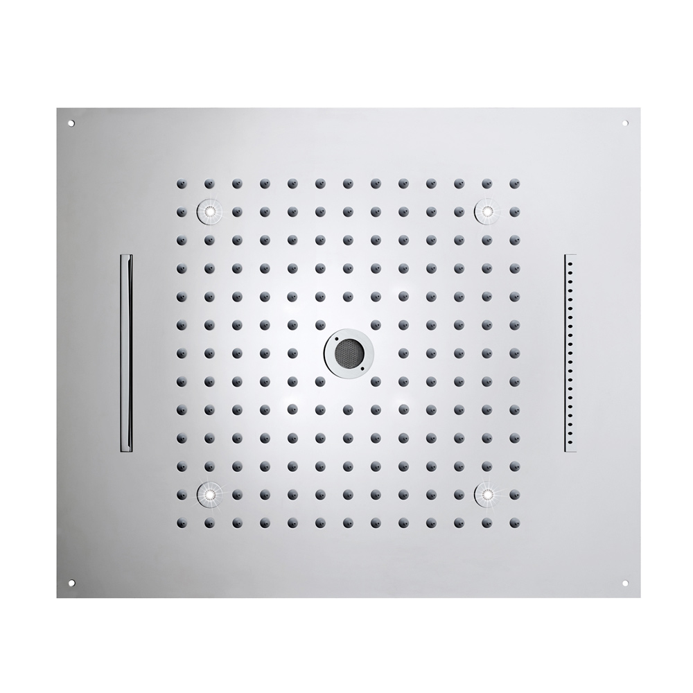 Produkti përfshin: - Kokë dushi Dream/4 me katër funksione (shiu, ujëvarë, ujëvarë me krehër, Kneipp) me drita të bardha LED - Transformator i tensionit të ulët - Tastiera e kontrollit: Ndizni dritat LED përmes tastierës së kontrollit të papërshkueshëm nga uji - Zorrë furnizimi me ujë për instalimin e tavanit të rremë