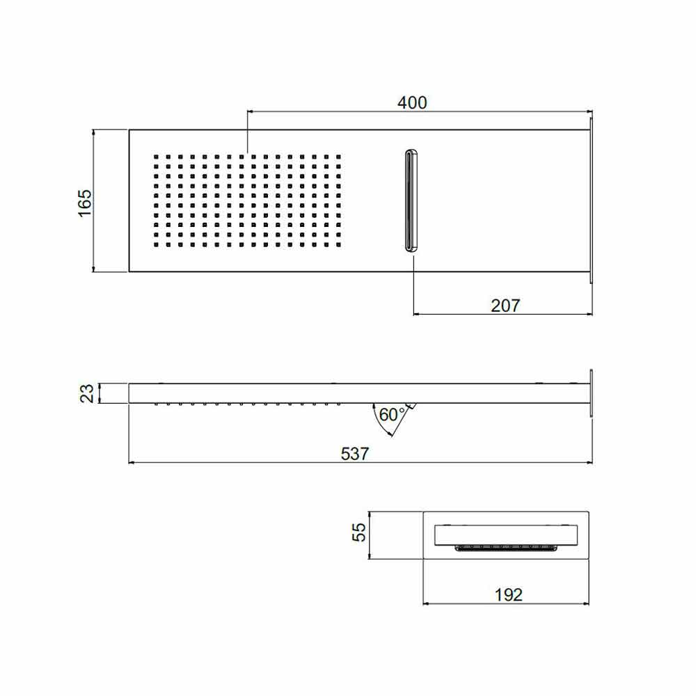Kokë dushi drejtkëndëshe çeliku inox me avion të dyfishtë Prodhuar në Itali.
