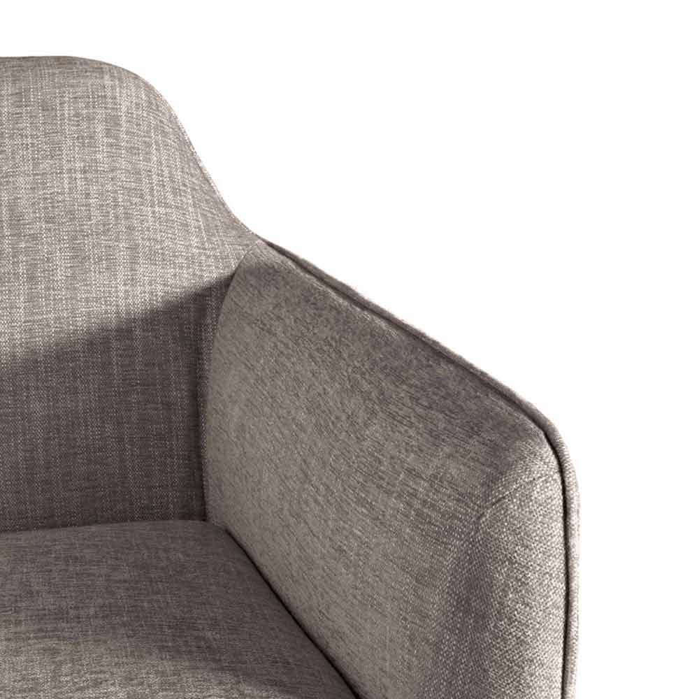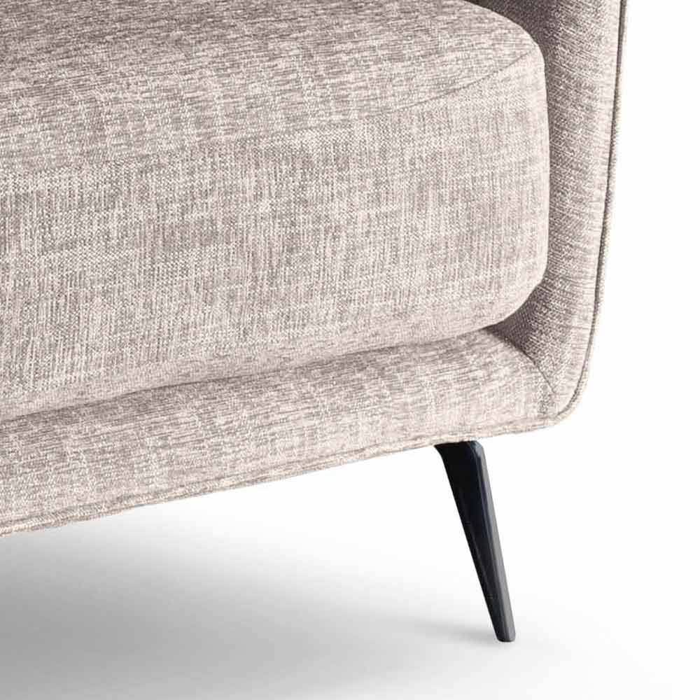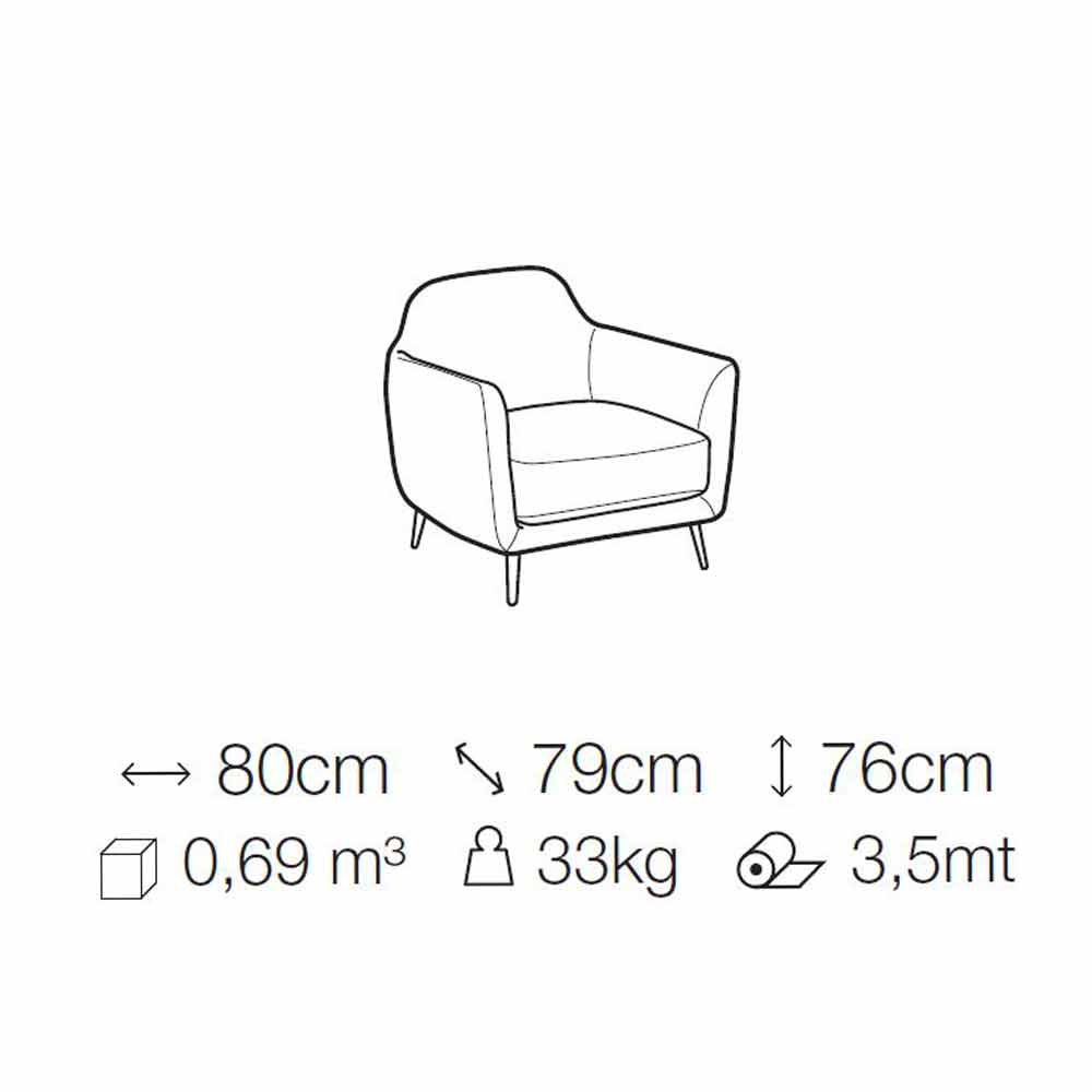 Kolltuk modern i dhomës së ndenjes me strukturë të brendshme në panele druri me shumë shtresa, i mbushur më pas dhe i mbuluar me pëlhurë plotësisht të lëvizshme dhe këmbë metalike të kromit të zi. Dizajni i tij është një referencë e qartë për stilin tradicional tipik të viteve '50 të karakterizuara nga një harmoni e mrekullueshme midis formave dhe e bërë unike dhe estetikisht interesante nga këmbët metalike të hedhura me gurë që japin një prekje jashtëzakonisht moderne dhe avangarde. Ajo që lind është një mobilje me një karakter të fortë dhe estetikë të njohur lehtësisht falë një personaliteti imponues dhe një stili të aftë të përcaktojë çdo zonë banimi. Jastëku nuk përfshihet .