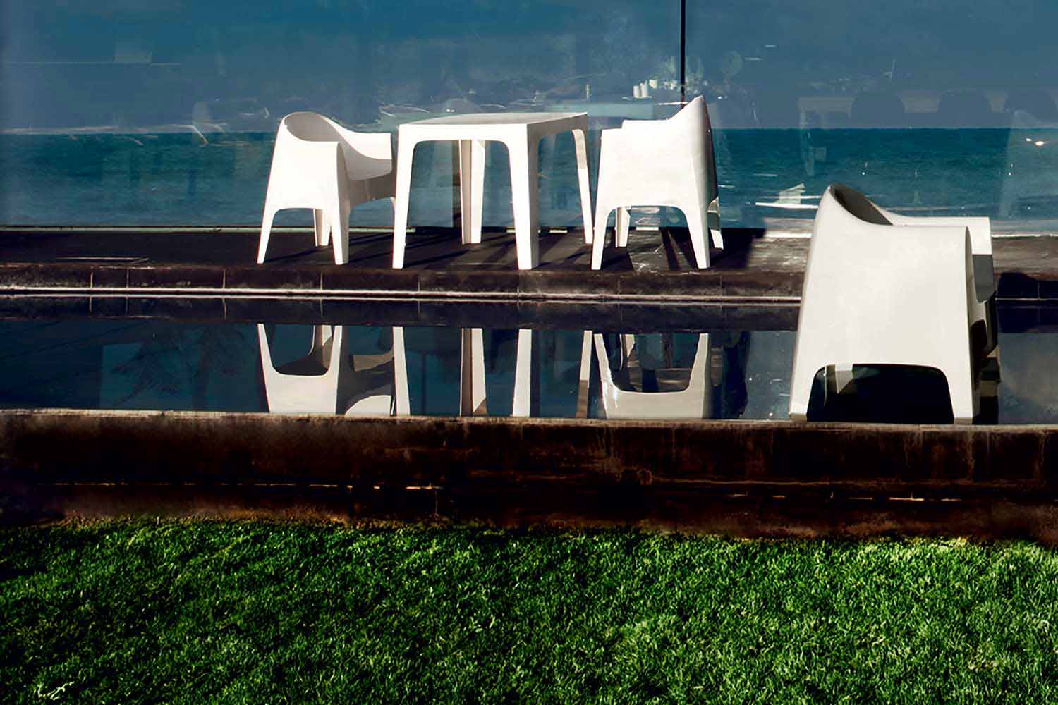 Kolltuk i jashtëm Koleksion i ngurtë nga Vondom, stilist Stefano Giovannoni Koleksioni Solid by Vondom u dizenjua nga dy dizajnerët italianë Stefano Giovannoni. Kjo linjë, megjithëse ka objekte të lehta, ofron qëndrueshmëri falë prerjes gjeometrike të përcaktuar mirë, sikur të ishte gdhendur në gur. Koleksion funksional falë shkathtësisë dhe dizajnit të tij. Divan i ngurtë i kopshtit është në polipropilen me aditivë minerale, të cilët e bëjnë objektin rezistent ndaj goditjeve dhe rrezeve UV. Në dispozicion në ngjyrat e mëposhtme: e bardhë, e zezë, ecr ec, e kuqe, bronzi.