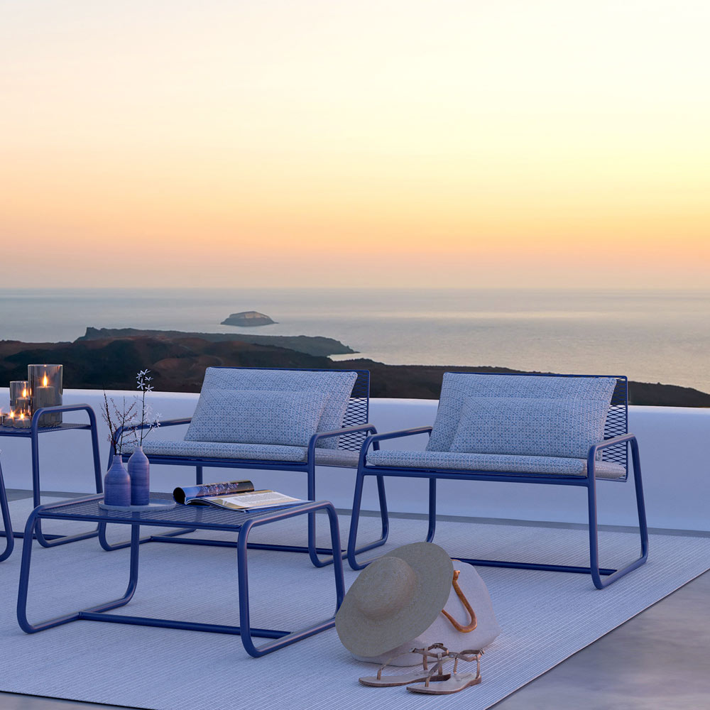 Kolltuk i jashtëm në metal me jastekë pëlhurash të koordinuar, me cilësi të lartë prodhuar në Itali.