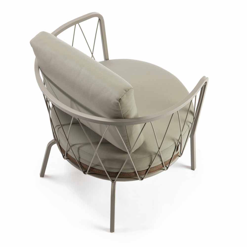 Kolltuk për jashtë dizajner, prej pëlhure dhe hekuri të galvanizuar me shtresë pluhuri, me jastëk të prodhuar në Itali.