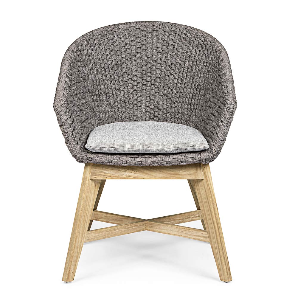 Jastëk vendesh me mbulesë të lëvizshme me pëlhurë të mbrojtur nga dielli Olefin (100% polipropilen). Këmbë dru tik - SVLK (dru i çertifikuar nga pyje të qëndrueshëm).