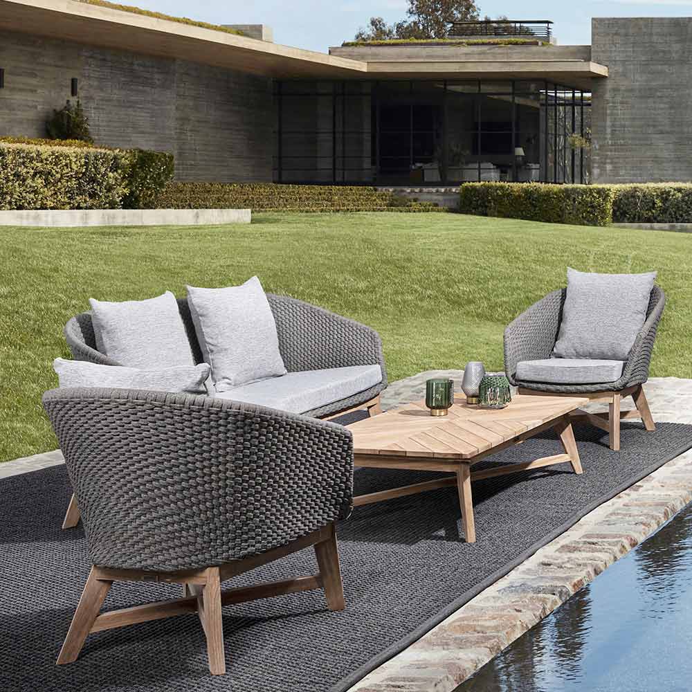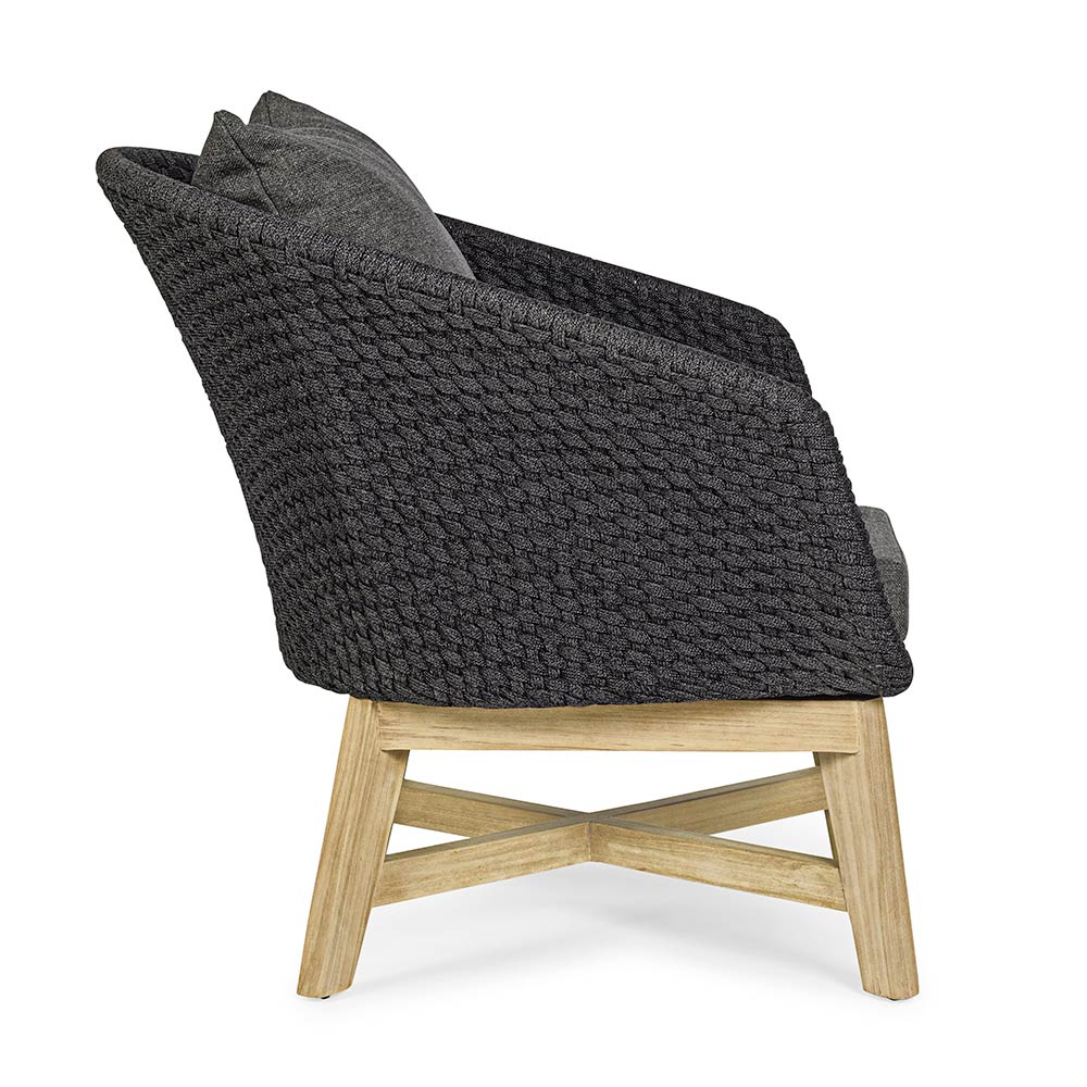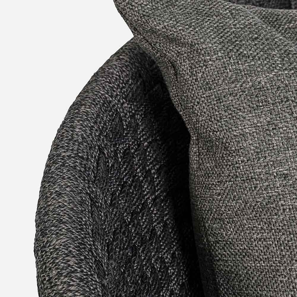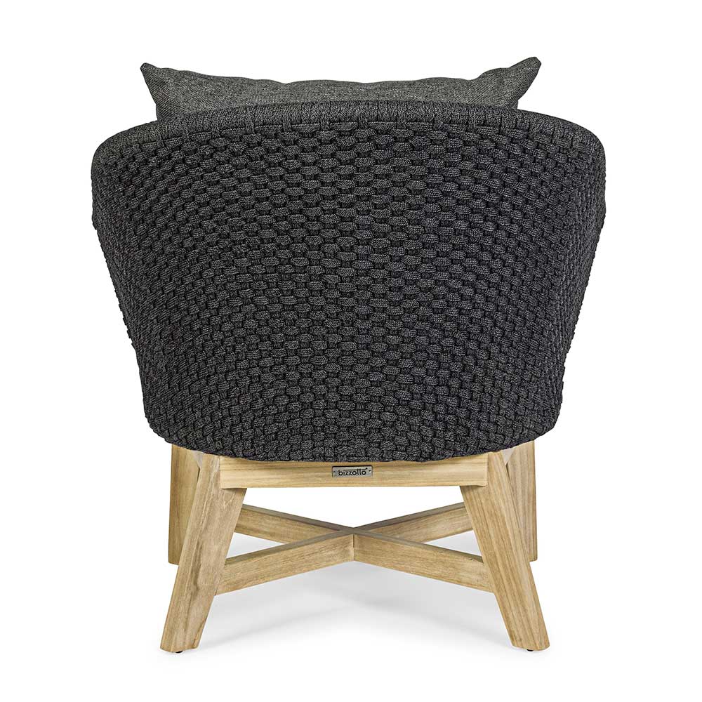 Kolltuk luksoz në natyrë në litar të endur me jastekë pëlhure të lëvizshëm.